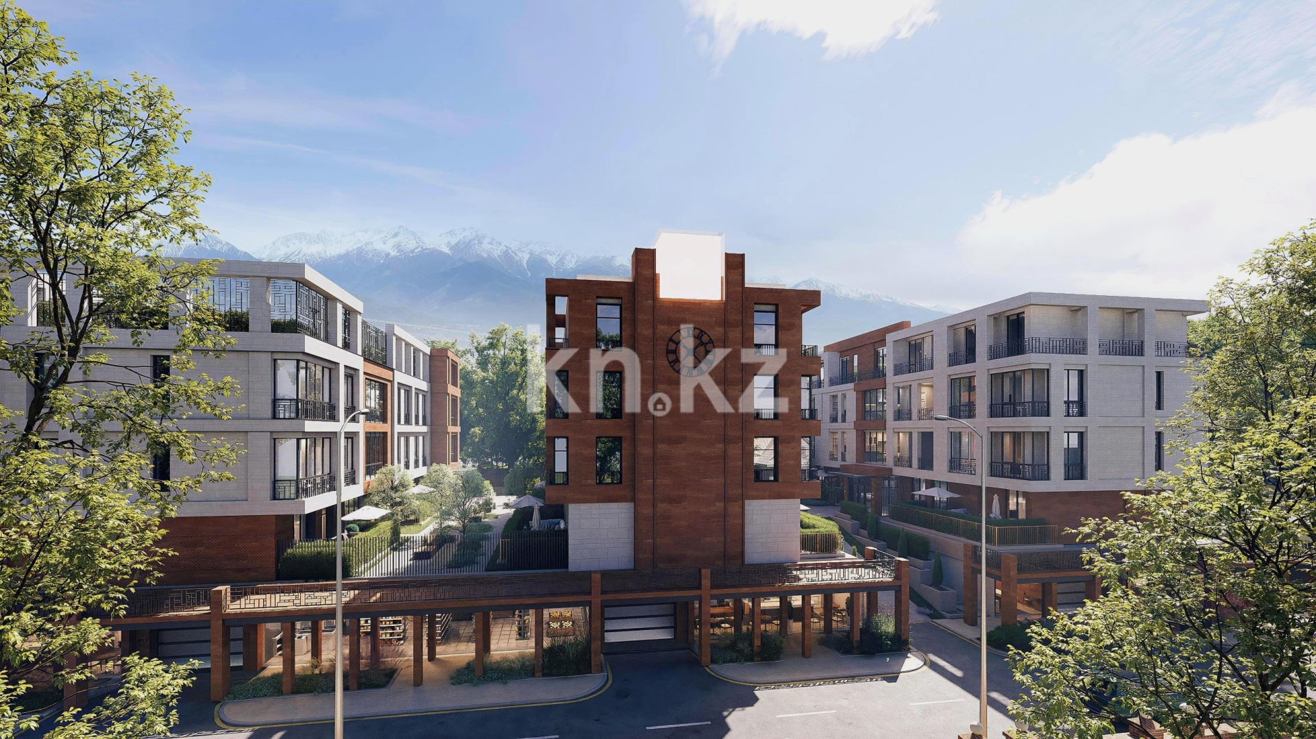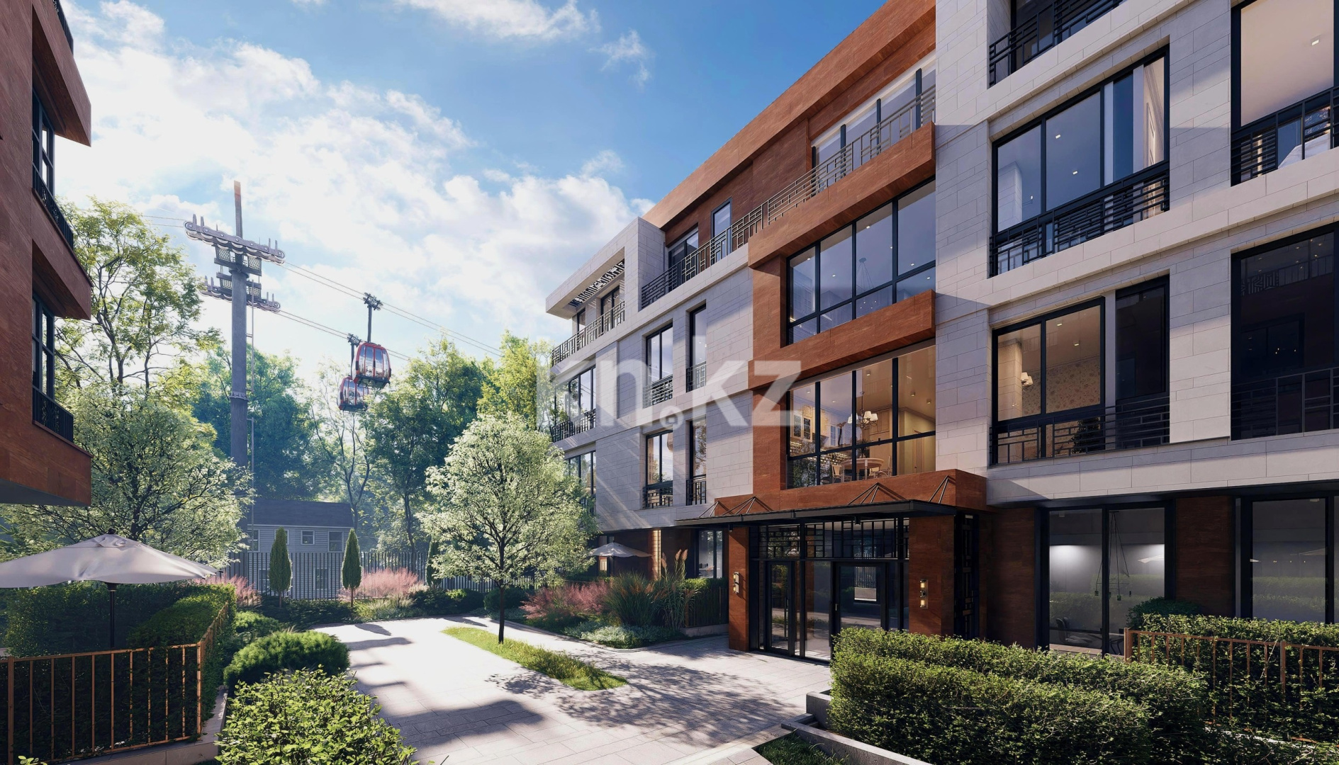 Вся территория комплекса благоустроена и украшена зелеными насаждениями. Особое внимание уделено деталям, создающим уединенные зоны, где можно отдохнуть в тишине и насладиться комфортом.