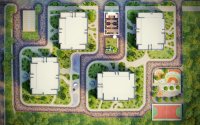 На территории комплекса есть детские площадки, комплекс street workout, универсальное игровое поле и круговая велосипедная дорожка.