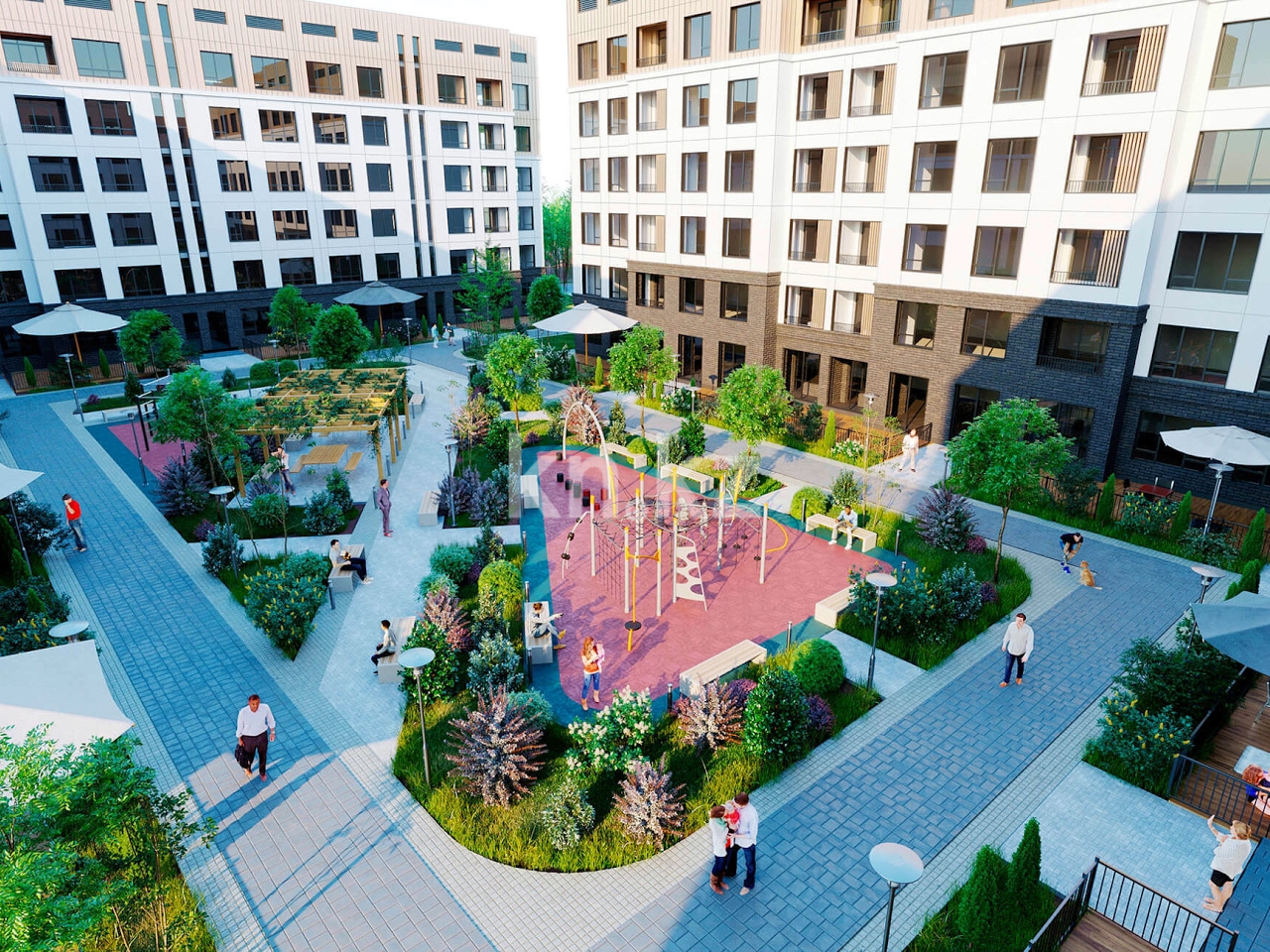 На территории городка будут расположены кафе, магазины, аптеки, тренажёрные залы, салоны красоты, детские площадки и центры.