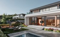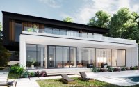 ЖК Beverly Hills представляет собой восемь двухэтажных вилл в стиле современный минимализм. Для облицовки фасадов, террасы первого этажа и бассейна используется итальянский керамогранит.