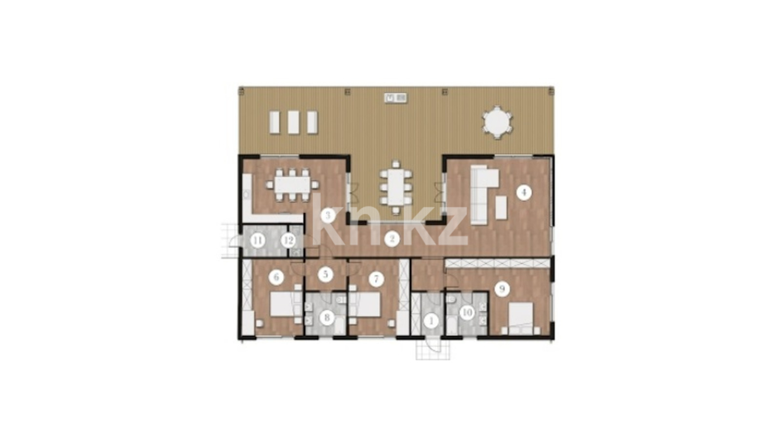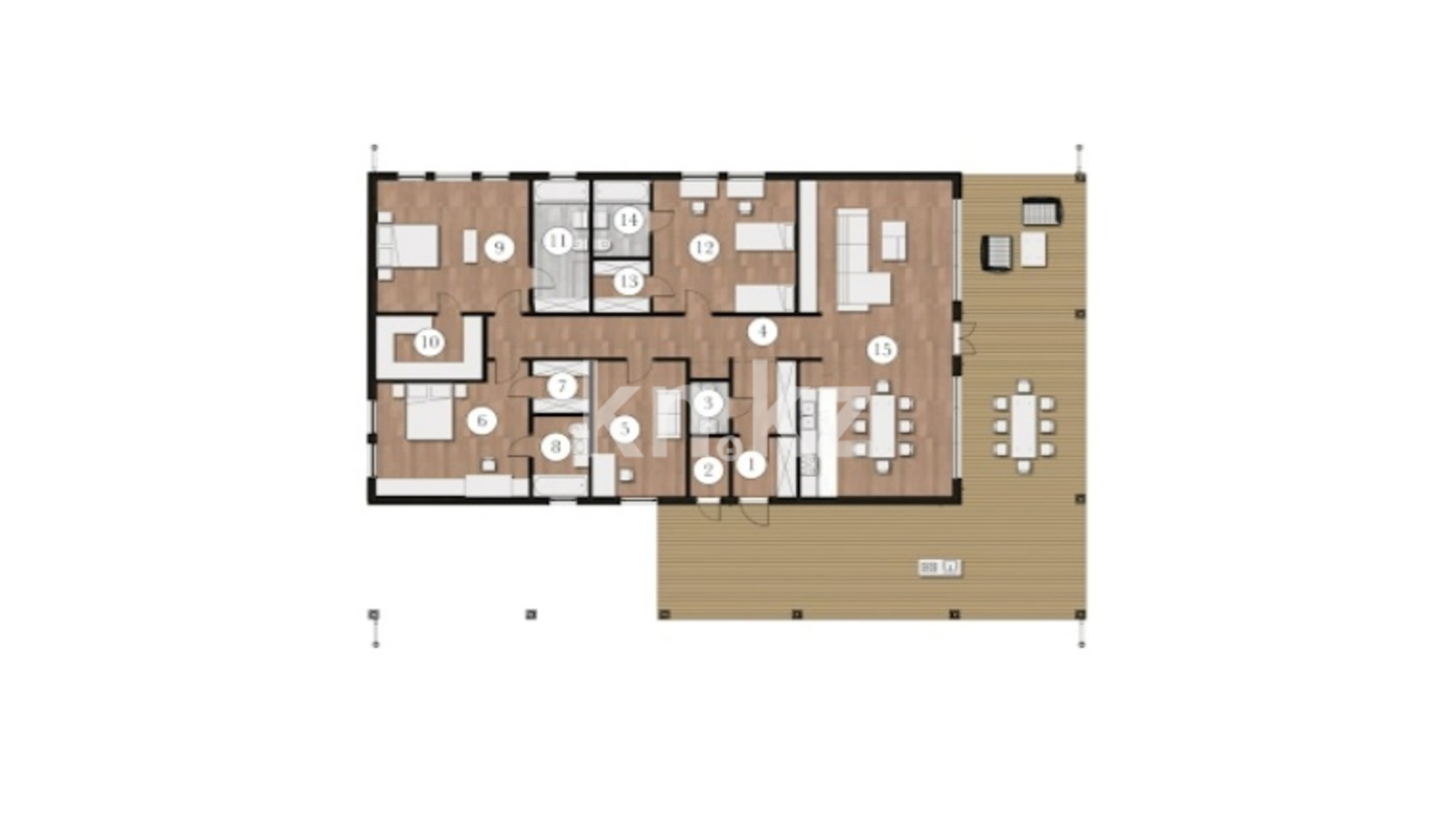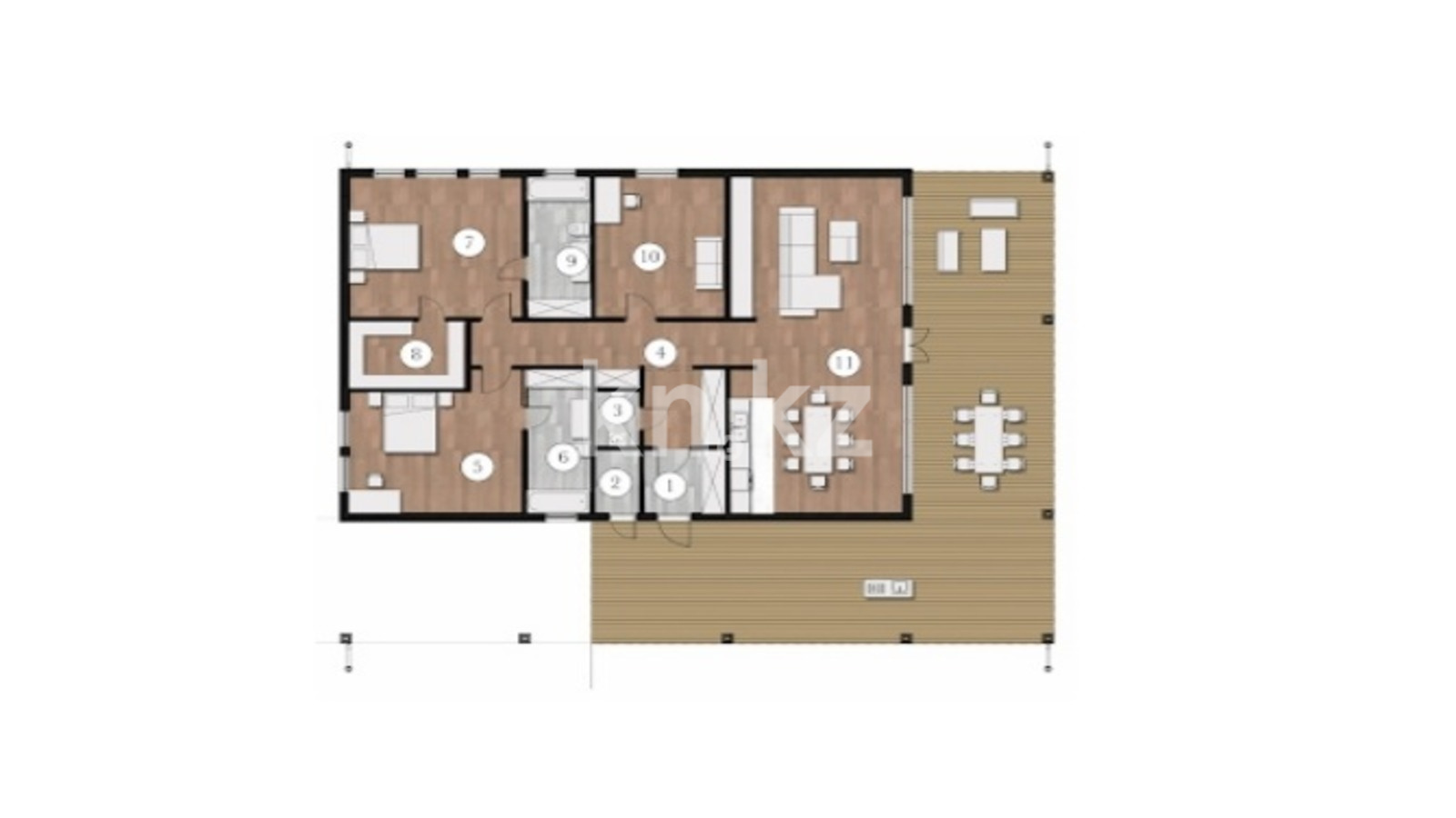 Country Club Talgar состоит из более, чем 50 отдельных одноэтажных вилл (4- или 5-комнатных) с фасадами из сосны, с большими террасами и собственными участками.