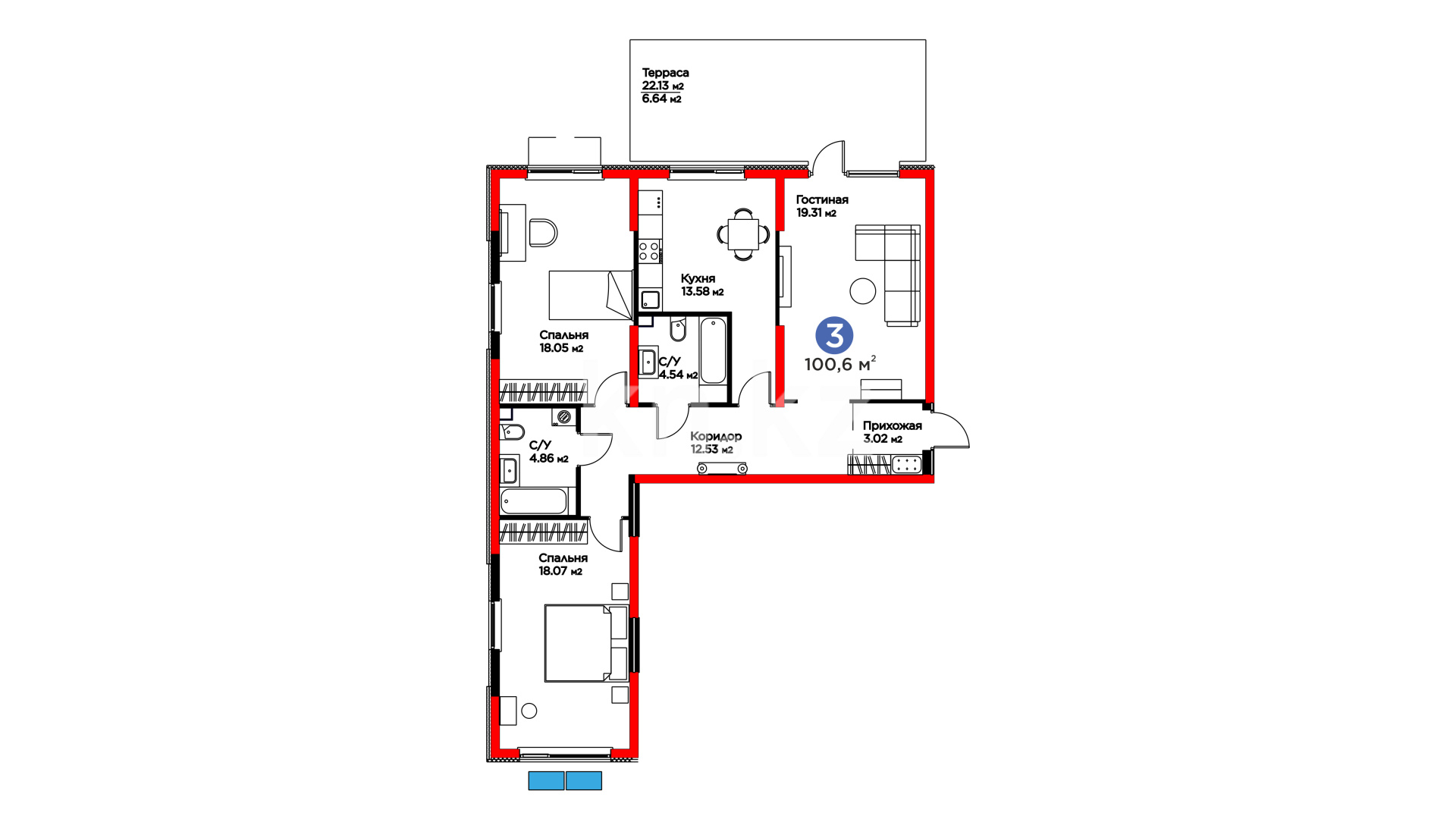 В комплексе представлено ограниченное количество уникальных квартир с собственными просторными террасами, где можно наслаждаться свежим воздухом и прекрасными видами.