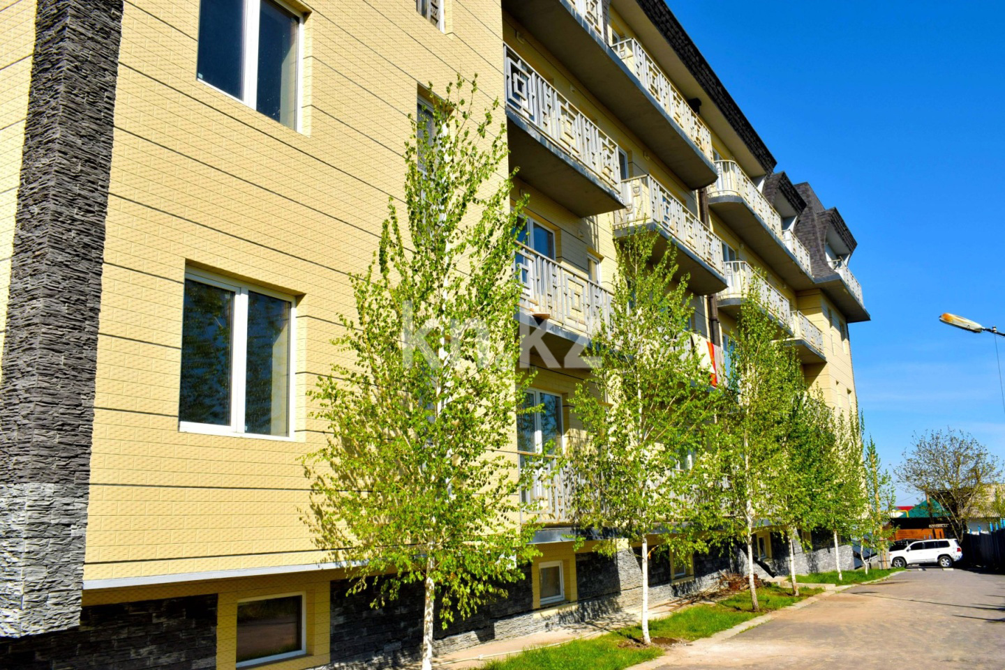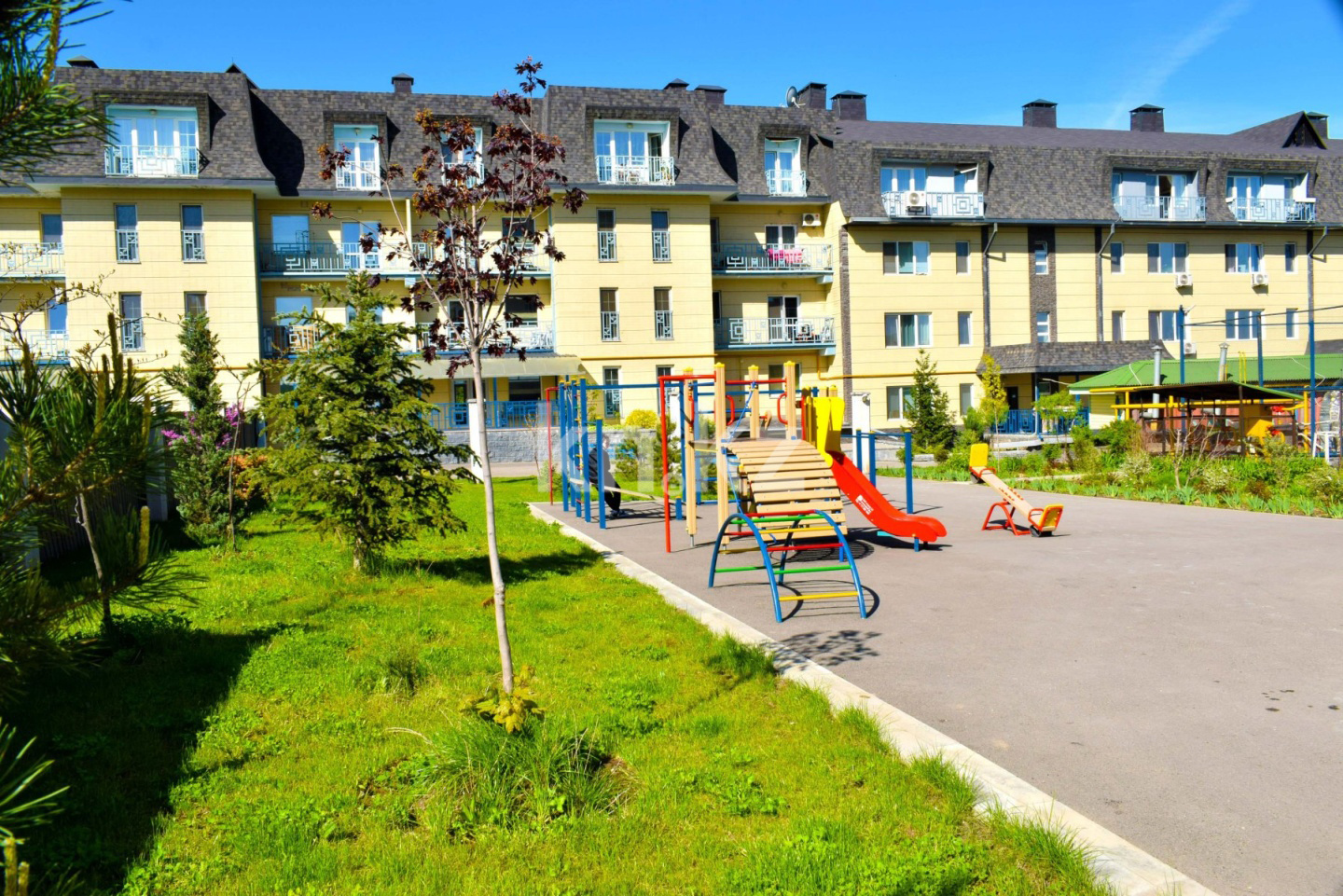 Жилой комплекс Eco Green состоит из двух 4-этажных домов и находится в Наурызбайском районе Алматы, в 900 метрах выше перекрёстка улиц Яссауи и Жандосова.