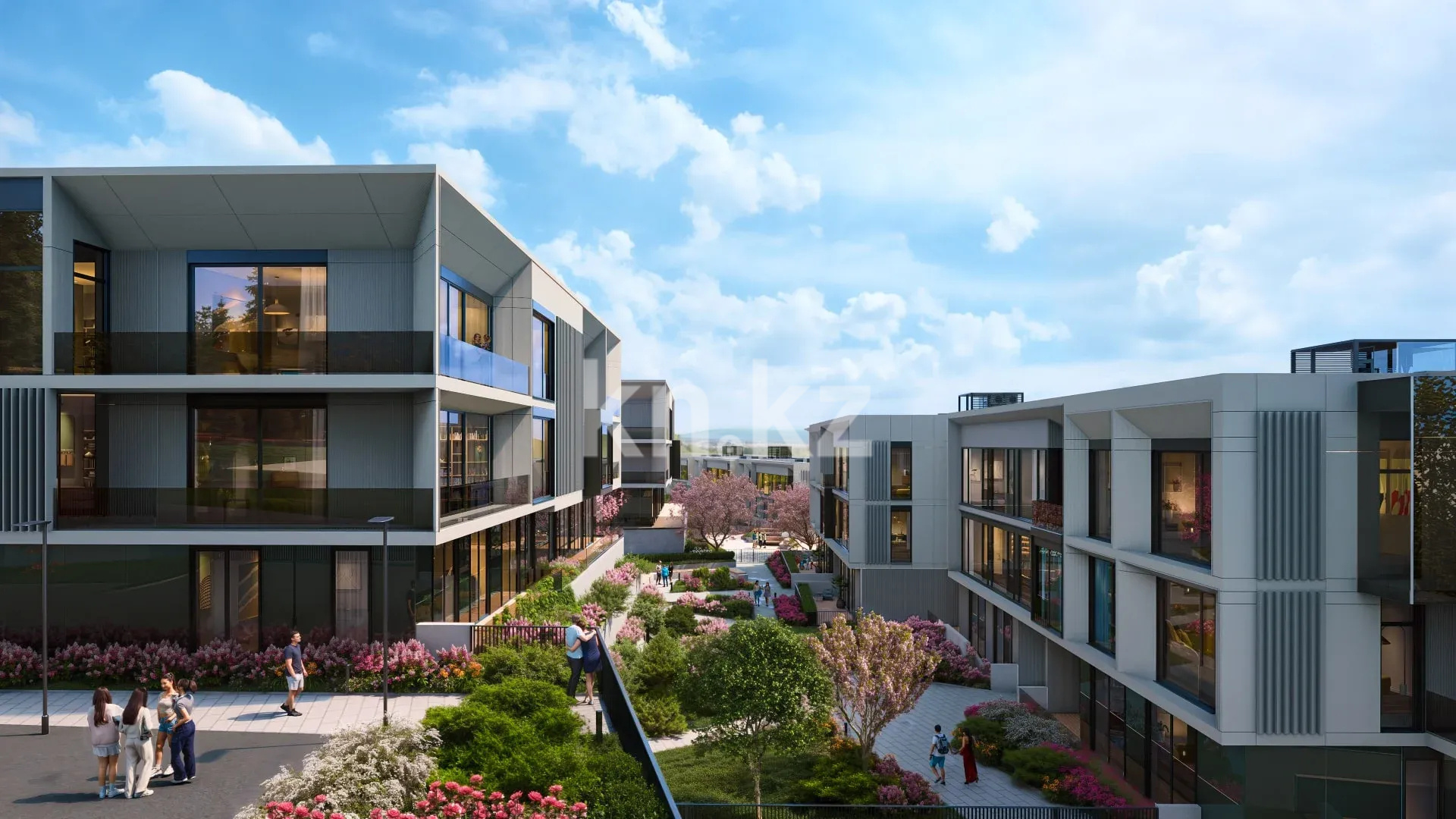 Комплекс из трёхэтажных зданий с уникальной каскадной композицией гармонично вписывается в природный ландшафт, создавая атмосферу уединения и исключительного комфорта. Для отделки фасадов используются навесные вентилируемые панели из HPL и архитектурного стекла. Витражные окна наполняют интерьеры естественным светом, создавая ощущение простора и гармонии с окружающей природой. Балконы и террасы дополняют облик домов, предлагая место для отдыха и наслаждения великолепными видами. Каскадное расположение: обеспечивает приватность каждого дома и открывает захватывающие панорамные виды для каждого жильца.
