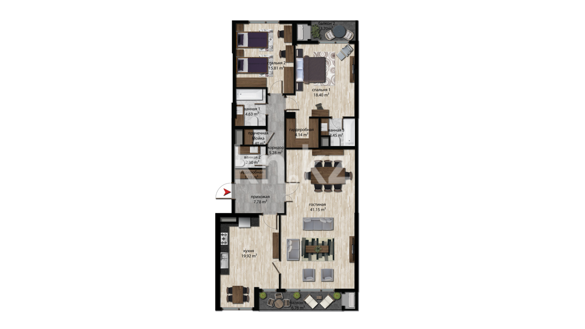 Площадь дворовой территории жилого комплекса составляет 1,8 гектаров, огорожена и закрыта для посторонних и машин. Безопасность жителей обеспечивает: круглосуточная охрана и система видеонаблюдения за территорией и местами общего пользования.