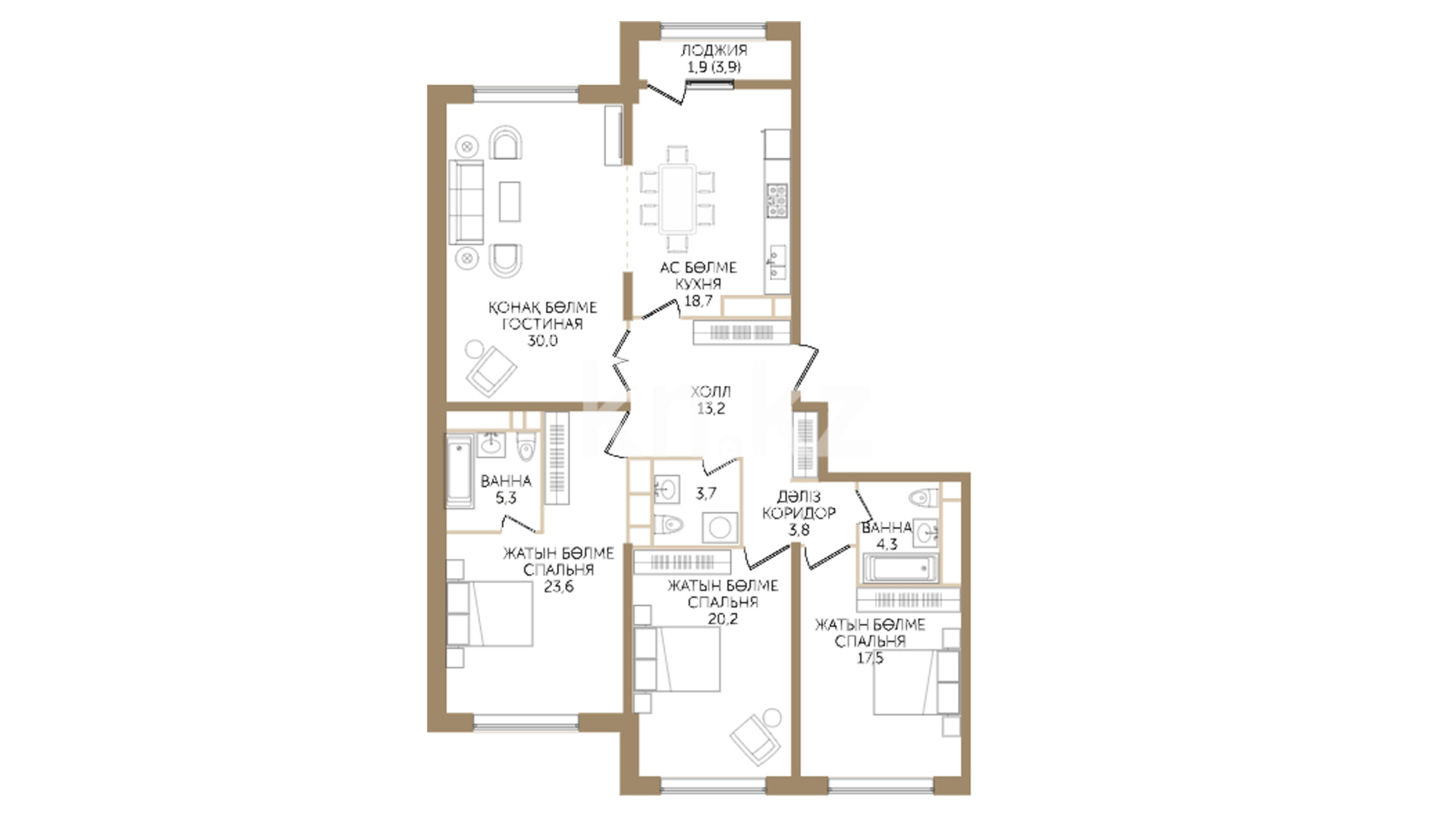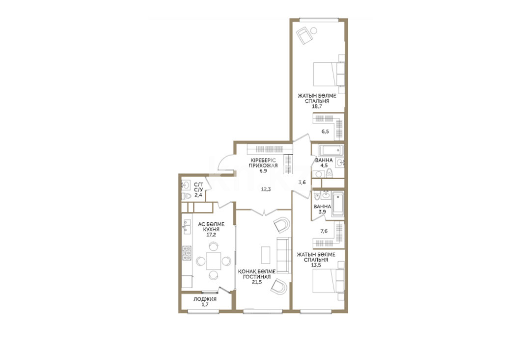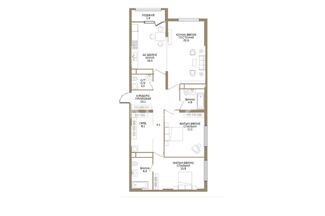 В комплексе представлены просторные 2- и 3-комнатные квартиры с панорамными окнами и высокими потолками до 3,6 м, площадью от 54 до 120 кв. метров.