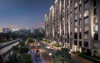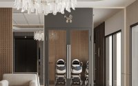 Входные группы и общественные пространства оформлены в современном стиле, с использованием керамогранита и декоративных элементов, таких как стильные люстры и акцентное освещение. Это подчёркивает высокий статус комплекса и заботу о деталях. Помещения оснащены бесшумными лифтами и адаптированы для людей с ограниченными возможностями, что делает их доступными и удобными для всех категорий жильцов. Также будут организованы специальные помещения для хранения колясок и велосипедов, что повысит удобство жителей.