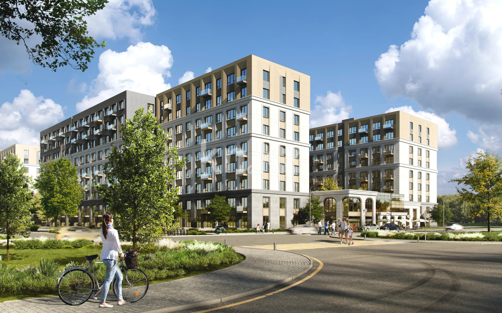 Пространство двора продумано до мелочей: закрытая территория создает атмосферу уюта и безопасности, позволяя жителям наслаждаться прогулками по живописным аллеям, заниматься спортом или отдыхать с семьей. Для детей и взрослых предусмотрены современные игровые и спортивные площадки.
