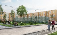По всему периметру, круглосуточно будет работать видеонаблюдение. Для автомобилей отведены специальные дорожки, ведущие на наземный паркинг.