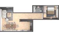 Пректом предусмотрены квартиры различной квадратуры в свободной планировке от 50 кв. метров. Владельцам квартир на верхних этажах будут доступны собственные террасы на крышах.