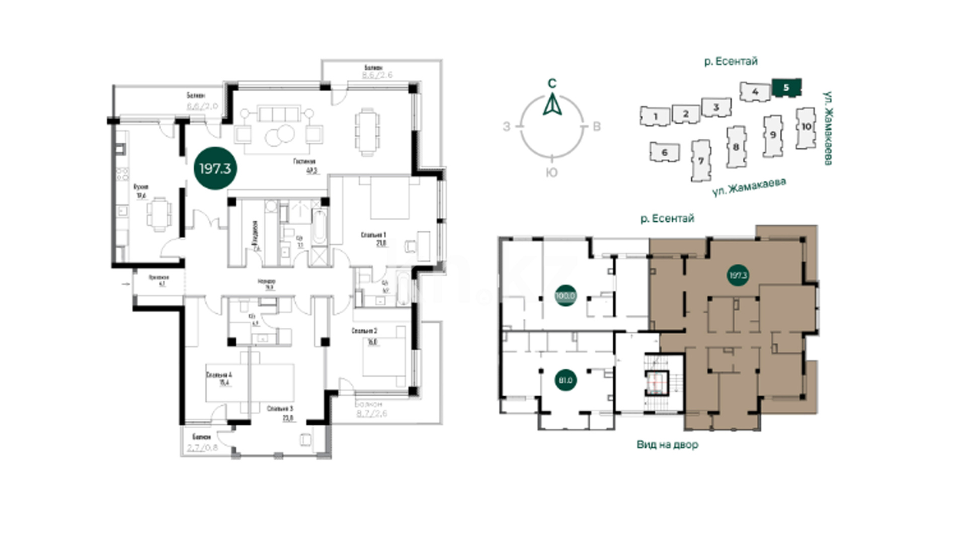 La Verde расположился в Медеуском районе, вдоль реки Есентай, по ул. Жамакаева.