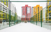 • Поле для футбола и баскетбола, огороженное сеткой.