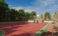 На территории комплекса расположены большие игровые детские площадки с качелями, горками, песочницами и спортивными тренажерами.