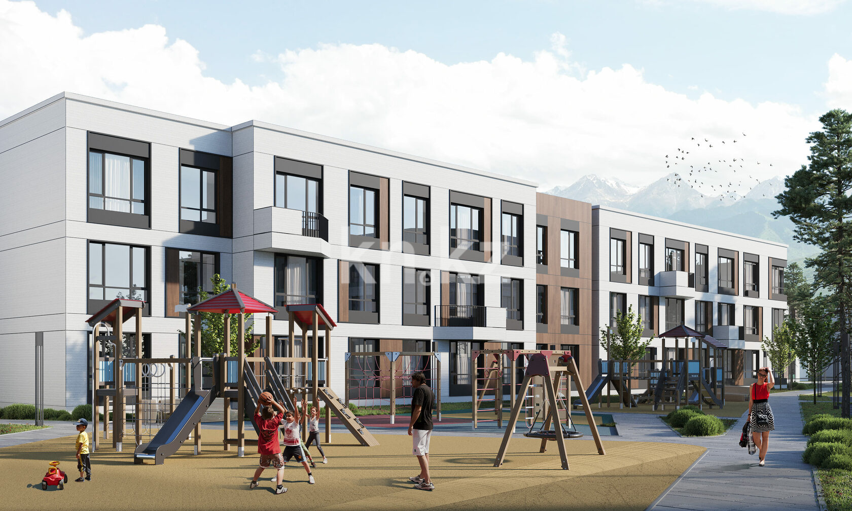 Территория комплекса закрыта для посторонних. Безопасность жителей обеспечивают контрольно-пропускные пункты и видеонаблюдение по всей территории.