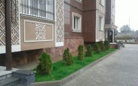 Конструкция здания – Металл каркас. Заполнение наружных стен – теплоблок. Наружная отделка – гранит, керамогранит. Утепление ригелей и колонн – минеральная плита. Стены – по стенам выравнивающая штукатурка, по ригелям цементно-песчаная, полы – цементно-песчаная стяжка, окна пластиковые. Лестничные холлы и площадки – гранит, керамогранит. Высота потолка – 3 м. Централизованные сети коммуникаций, бесшумные лифты, ограждение территории. Дом телефонизирован - оптико-волоконная связь, интернет.