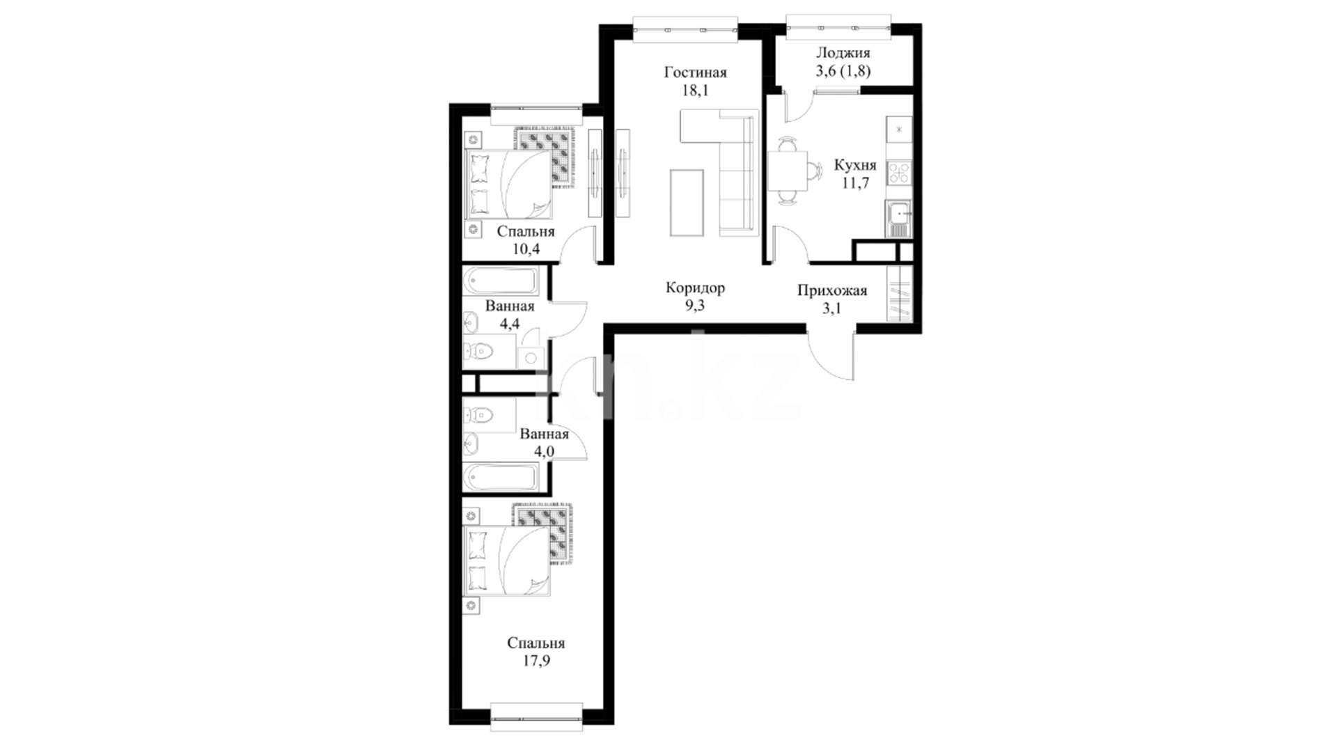 3-комнатная