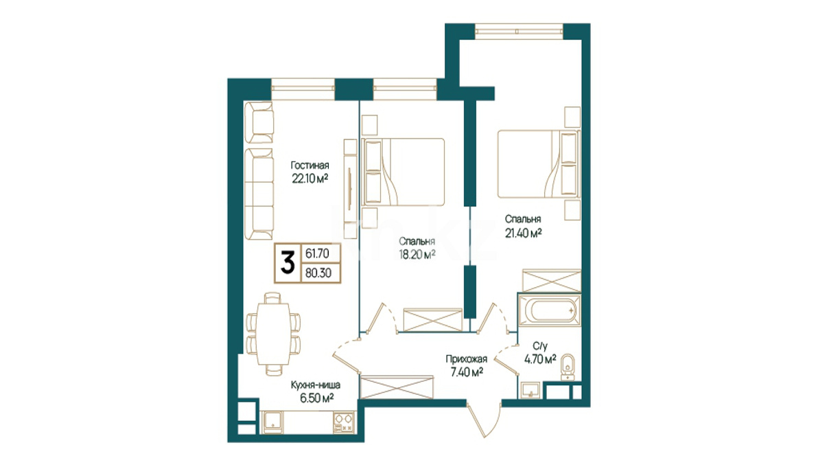 В комплексе представлены 1-, 2- и 3-комнатные квартиры различной квадратуры в свободной планировке. Первые этажи каждого здания предназначены для коммерческой недвижимости.