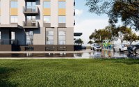 В комплексе представлены 1-, 2- и 3-комнатные квартиры площадью от 28 до 68 кв. метров. Первые 2 этажа комплекса отведены под размещение коммерческих помещений.