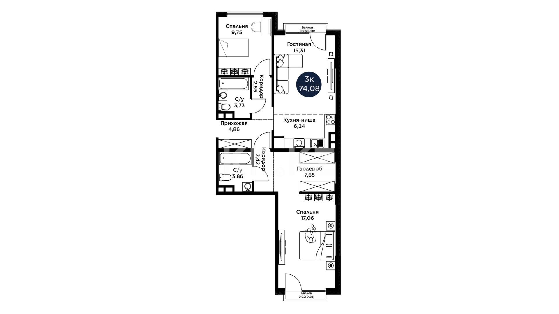 • Материалы: внешние стены и перегородки выполнены из экологичного газоблока, который сочетает прочность и отличную теплоизоляцию.