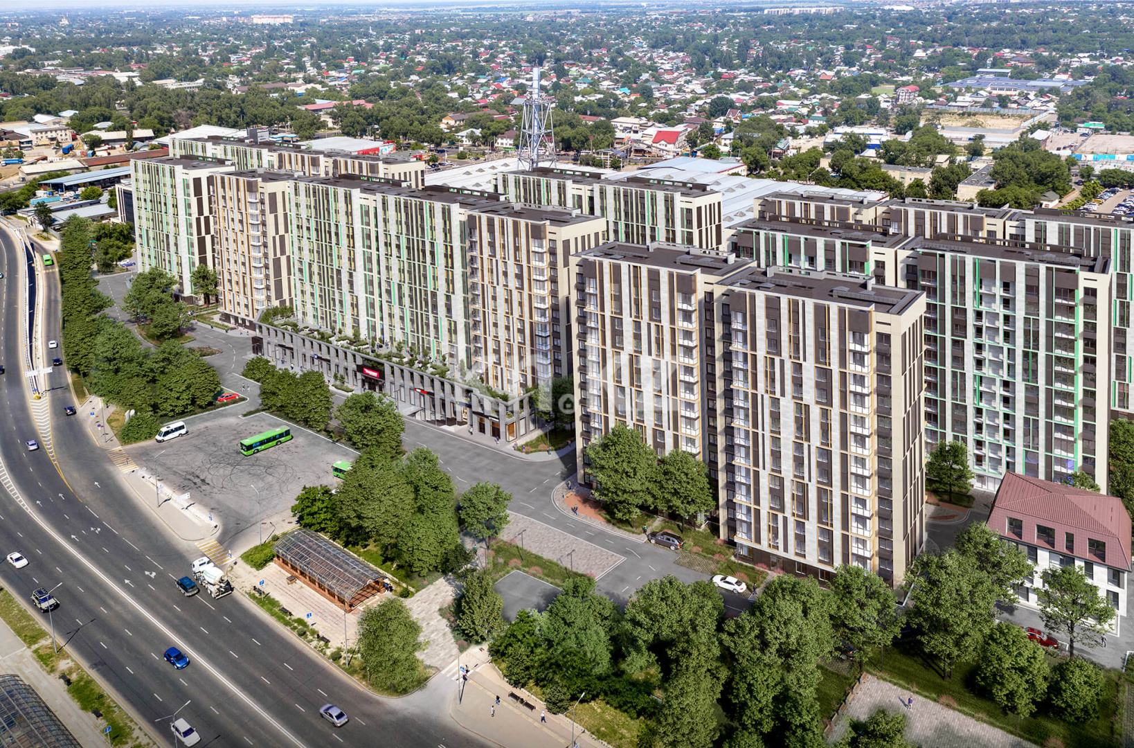 Комплекс состоит из 17 домов - тринадцатиэтажные здания выдержанные в современном стиле. У зданий железобетонный монолитный каркас, обеспечивающий сейсмостойкость - десять баллов.