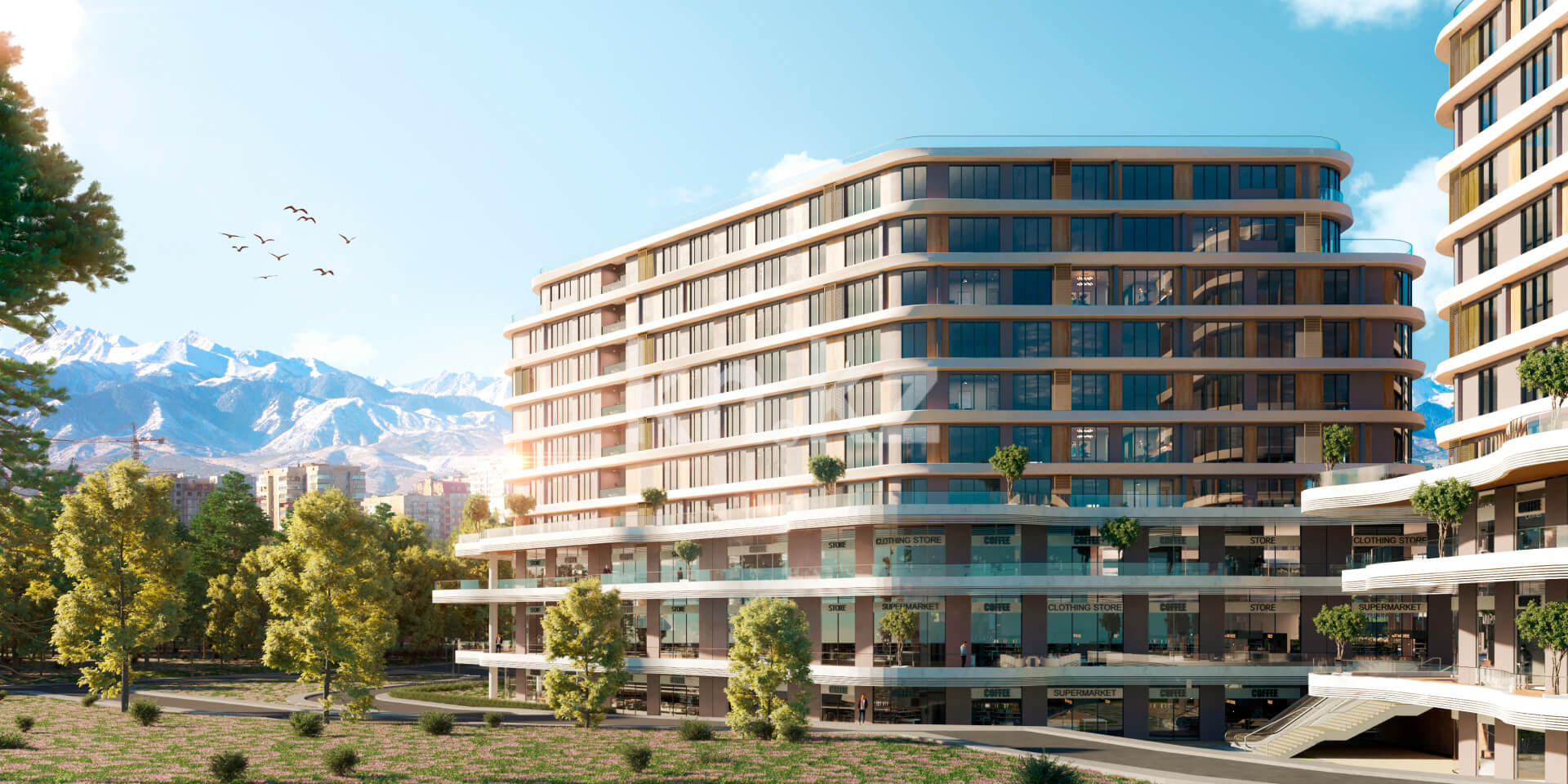 Rams Signature - новый жилой комплекс бизнес-класса, расположен в сердце делового центра Алматы, на пересечении улиц Байтурсынова и Тимирязева, возле ТРЦ Forum.