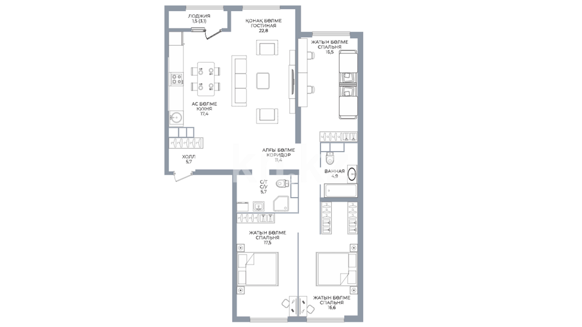 3-комнатная