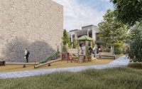 У каждого таунхауса есть свой небольшой придворой участок, куда можно попасть через входную группу на кухне, а также индивидуальная терраса на крыше. Возле каждого дома предусмотрен охраняемый паркинг на 2 автомобиля, который находится под круглосуточным видеонаблюдением.