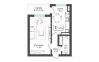 1-комнатные - 32,77 кв. м;