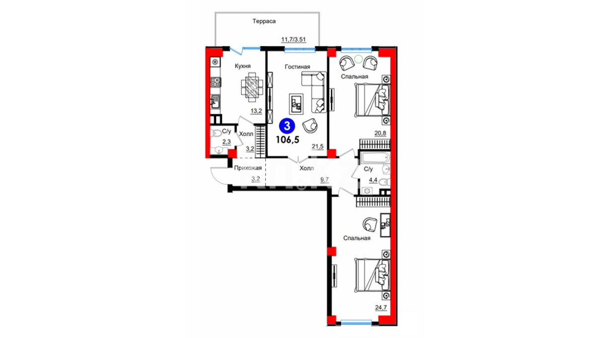 Огороженная придомовая территория. Высокий уровень безопасности обеспечивает система круглосуточного видеонаблюдения, также работает охранная служба.