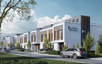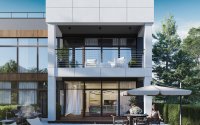 Sunday Terrace - 14 двухэтажных таунхаусов в современном стиле с элементами хай-тек. Фасад облицован фиброцементными панелями под дерево и керамогранит.