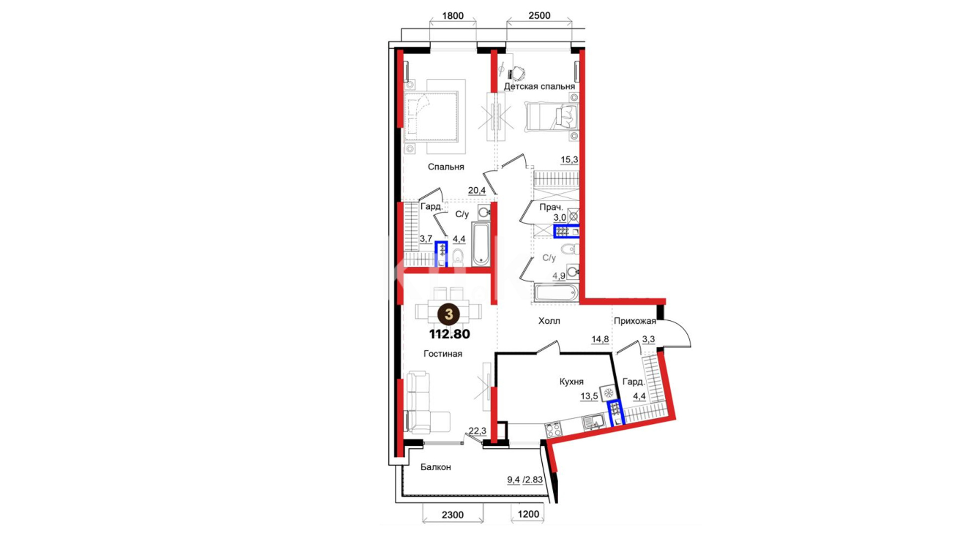 3-комнатная