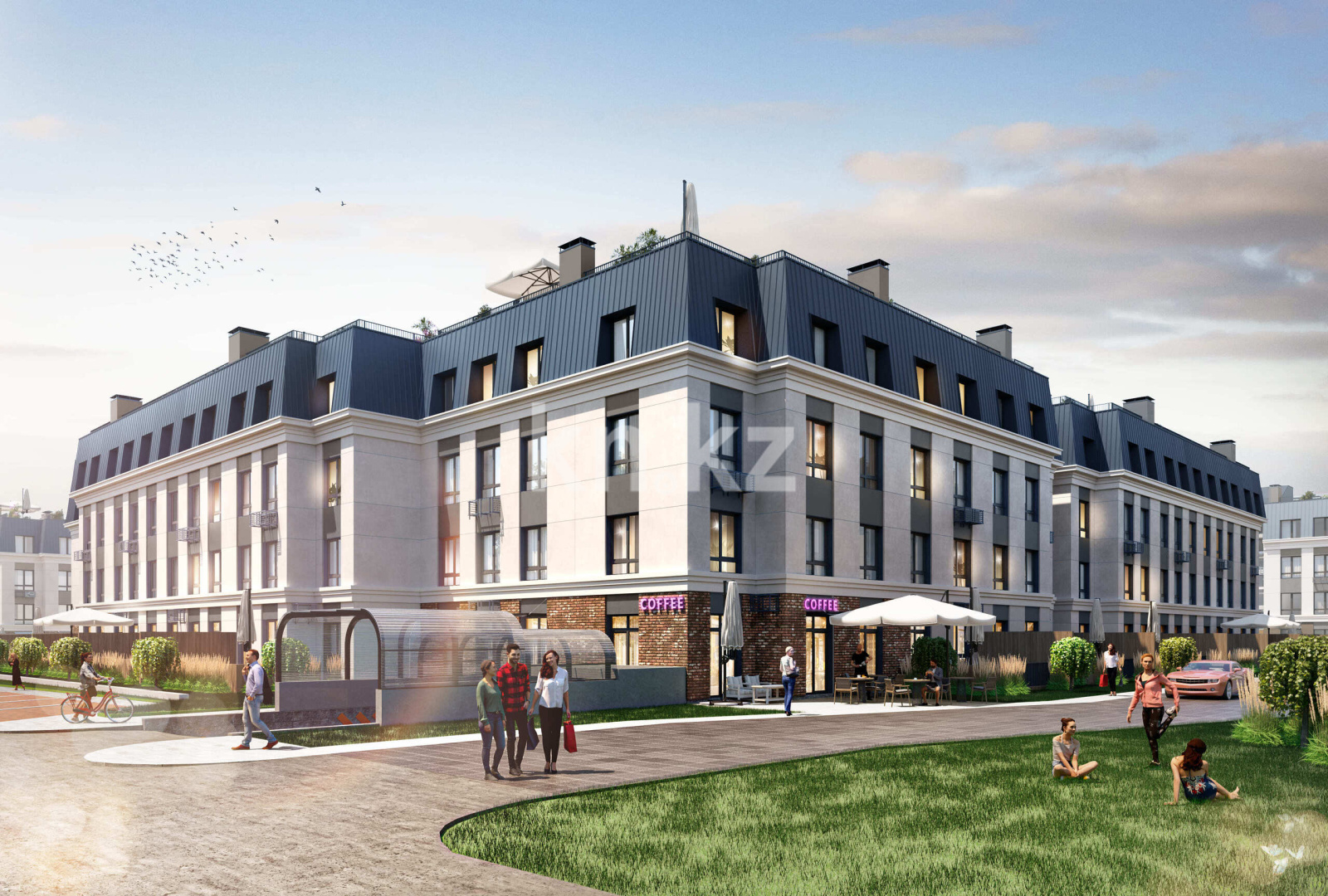 На территории предусмотрены магазины, аптека, банк, кафе, химчистка и салон красоты для комфорта жителей.