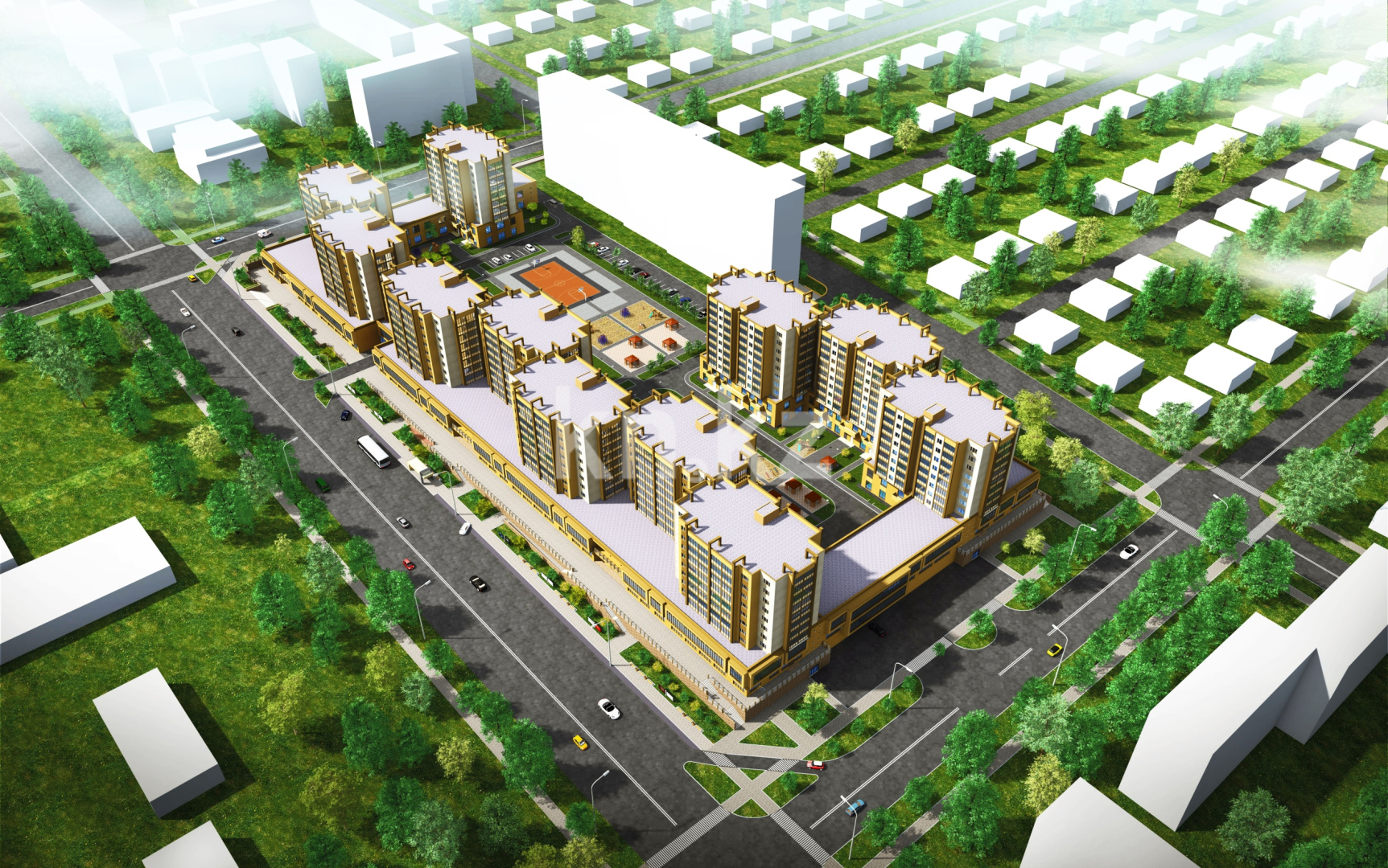 Планом застройки предусмотрено оборудование подземной и гостевых парковок, детских игровых площадок и зон отдыха. Во встроенно-пристроенных помещениях первого этажа располагаются объекты собственной инфраструктуры, в том числе детский садик на восемьдесят мест.