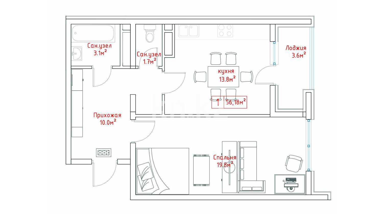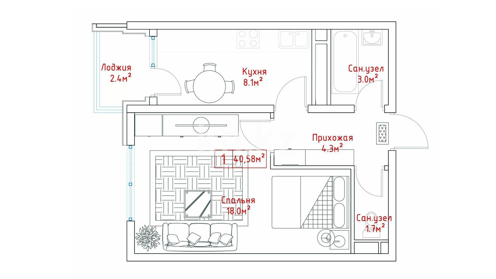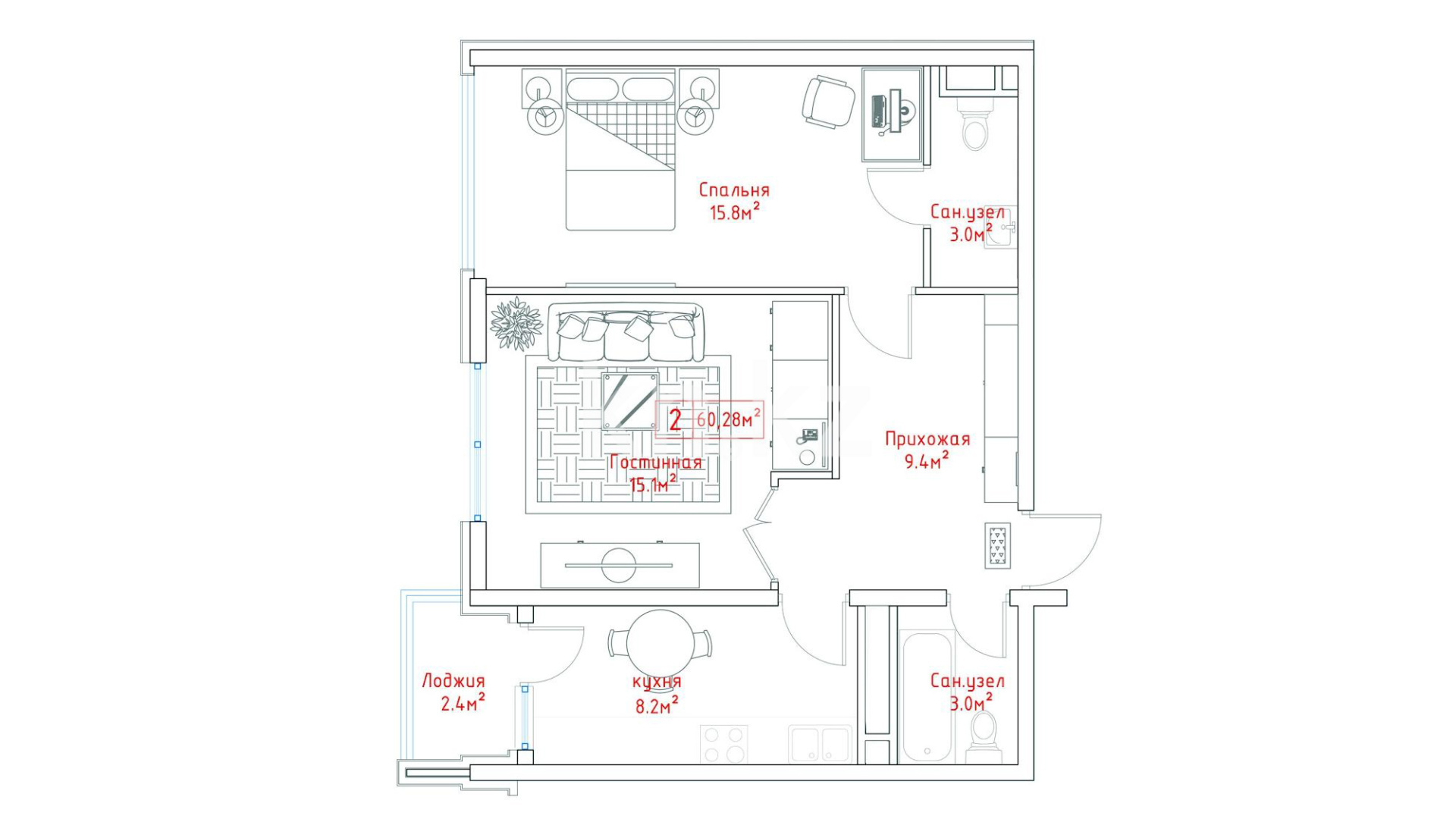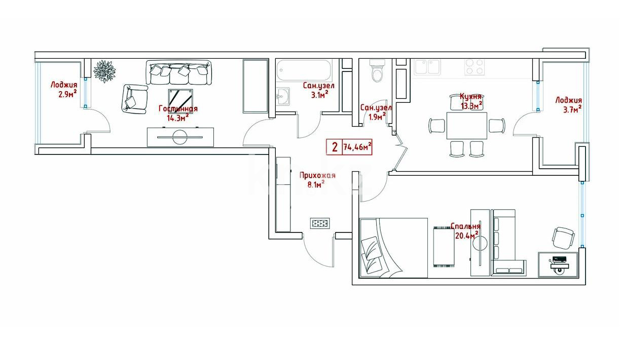В комплексе представлены 1- и 2-комнатные квартиры площадью от 40 до 76 кв. метров.