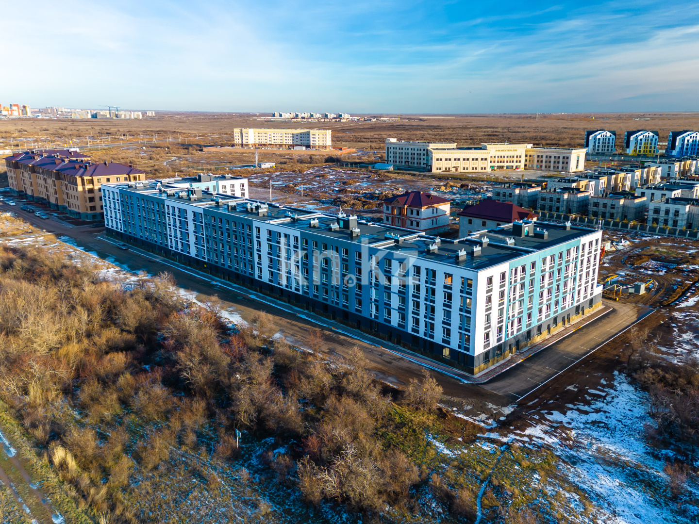 ЖК Ainabulaq - современный четырехэтажный дом из семи секций. В комплексе представлены одно-, двух-, трехкомнатные квартиры, площадью от 35 до 95 кв. метров. Увеличенные окна - 1,9 метра.