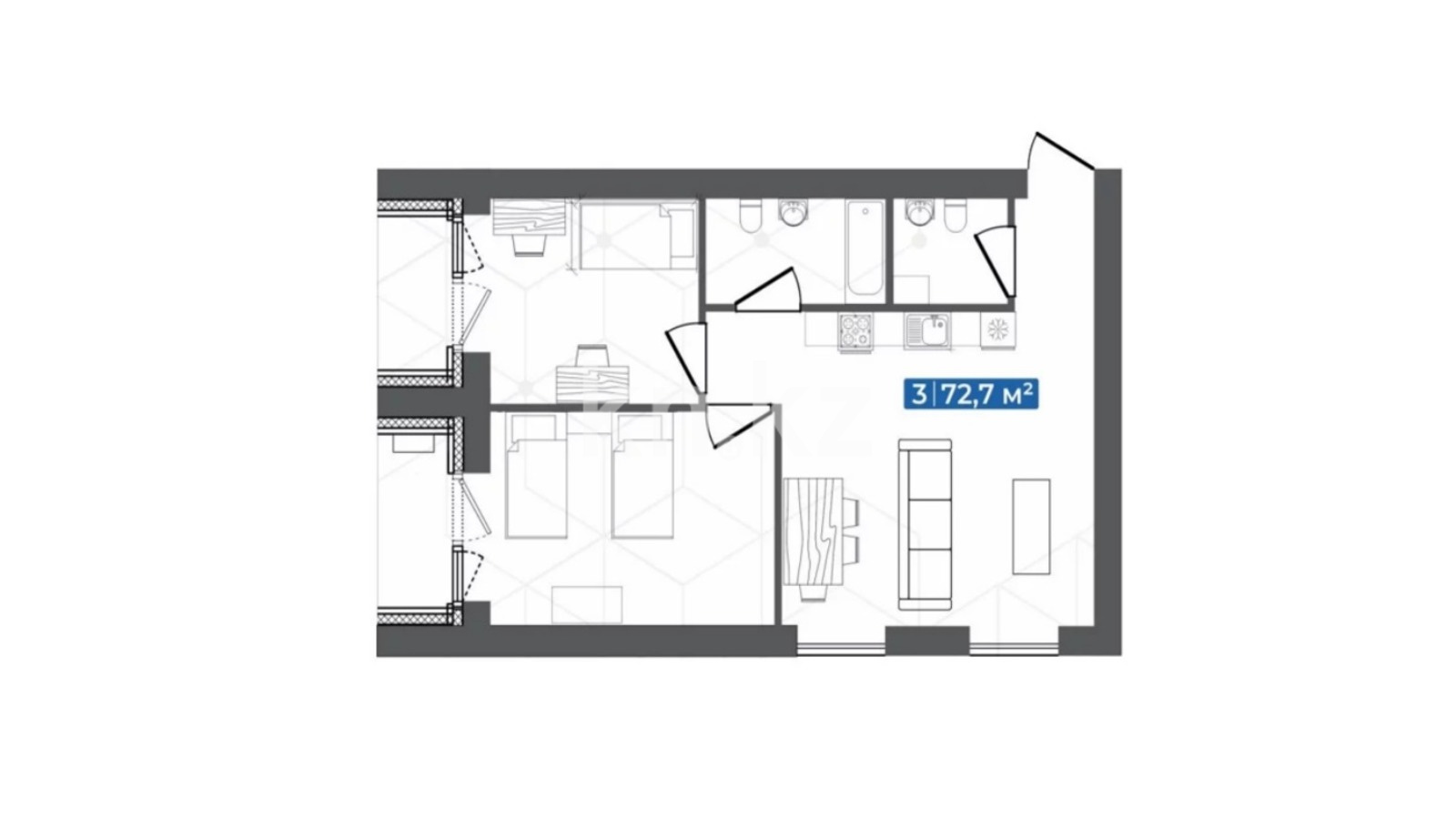 Жилой комплекс состоит из шести шестиэтажных секций, в которых помимо квартир предусмотрены коммерческие помещения. В комплексе представлены 1-, 2-, 3-комнатные квартиры малосемейного типа.