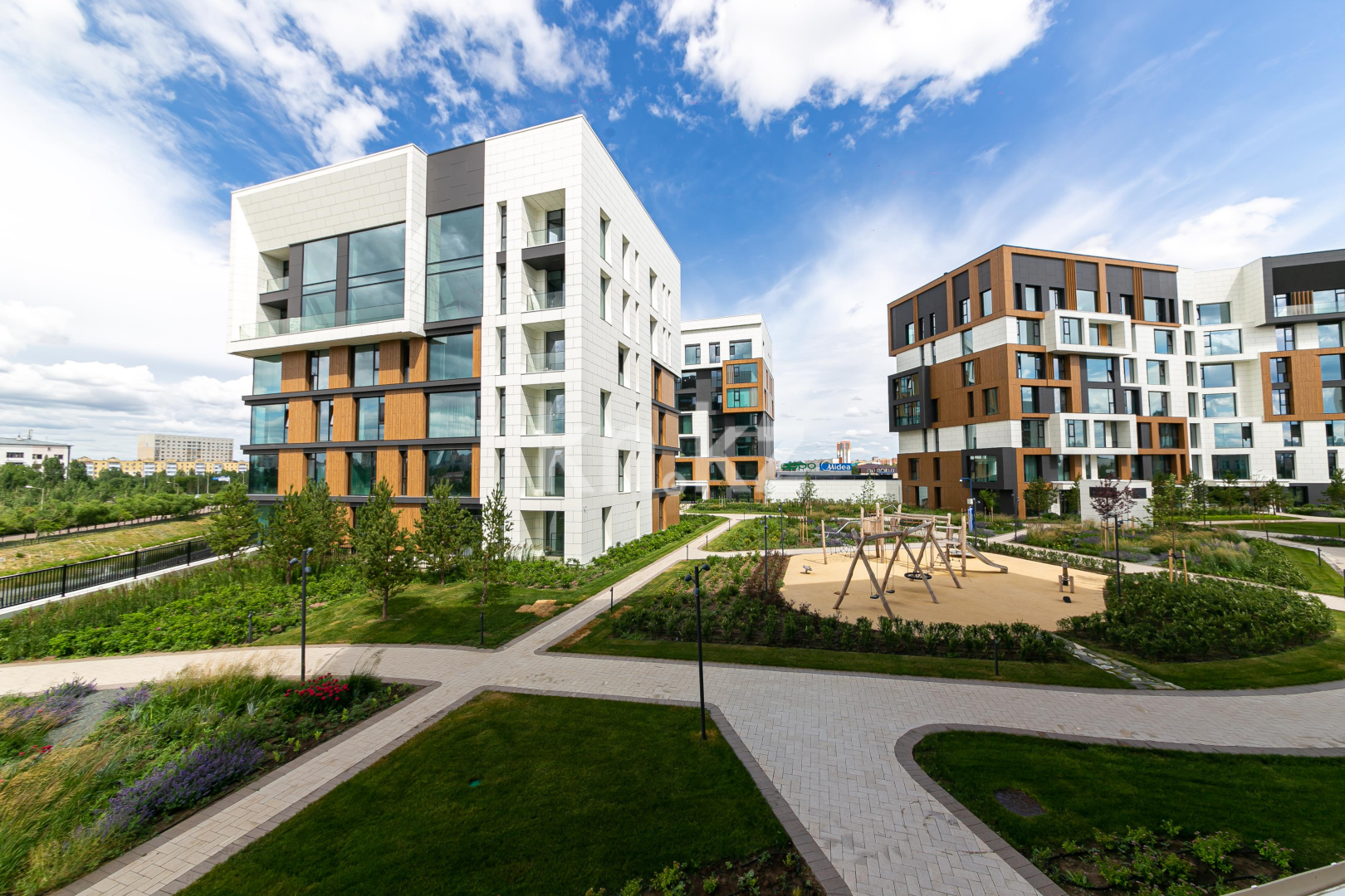 В комплексе представлены 3-10-комнатные квартиры площадью от 93,59 до 429,71 кв. м. Квартиры имеют панорамный вид на р. Есиль.