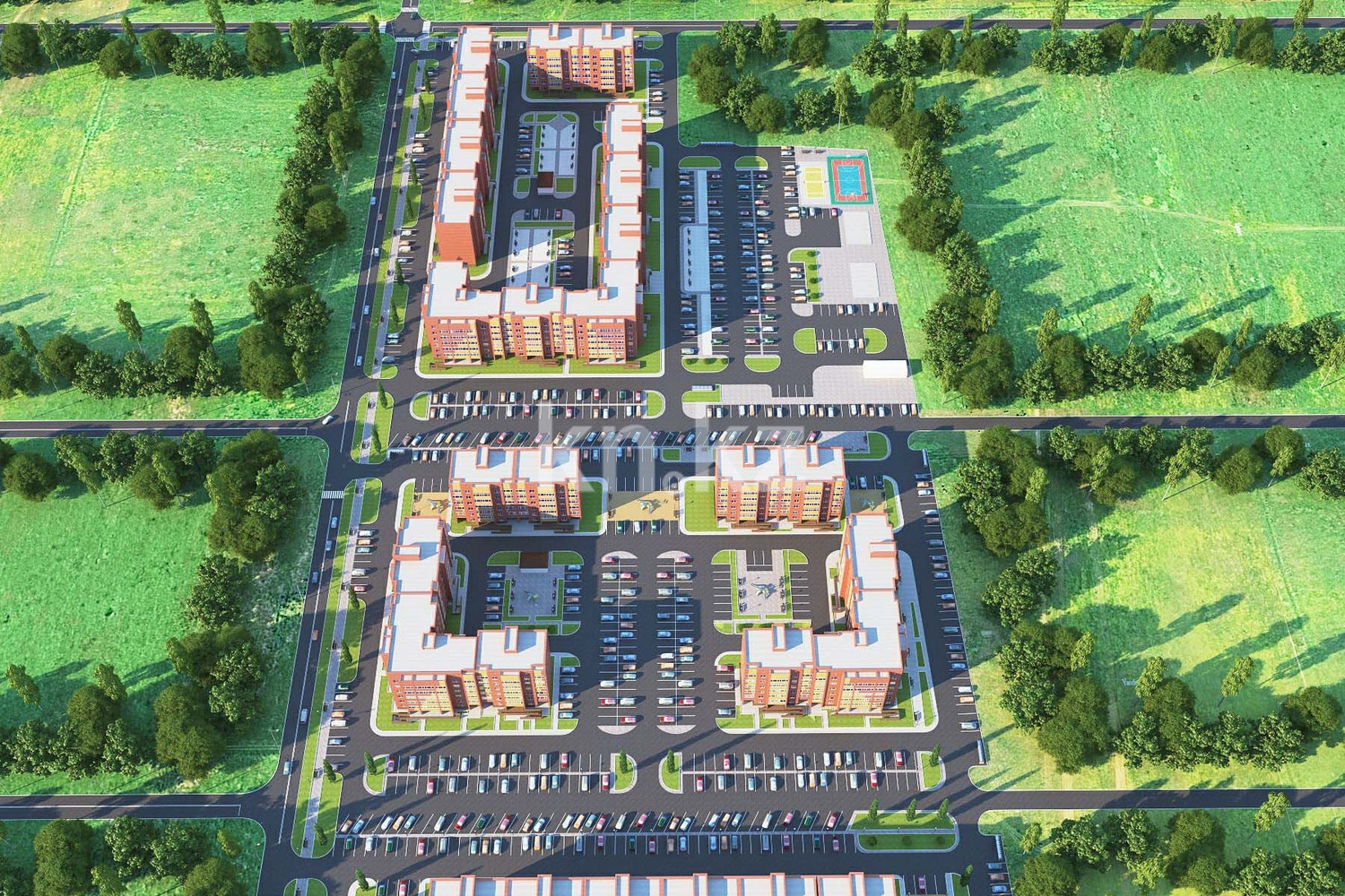 На территории жилого комплекса предусмотрена бесплатная парковка на 290 мест, три детские и две спортивные площадки, волейбольное и футбольное поля. Будет выполнено благоустройство и озеленение района.
