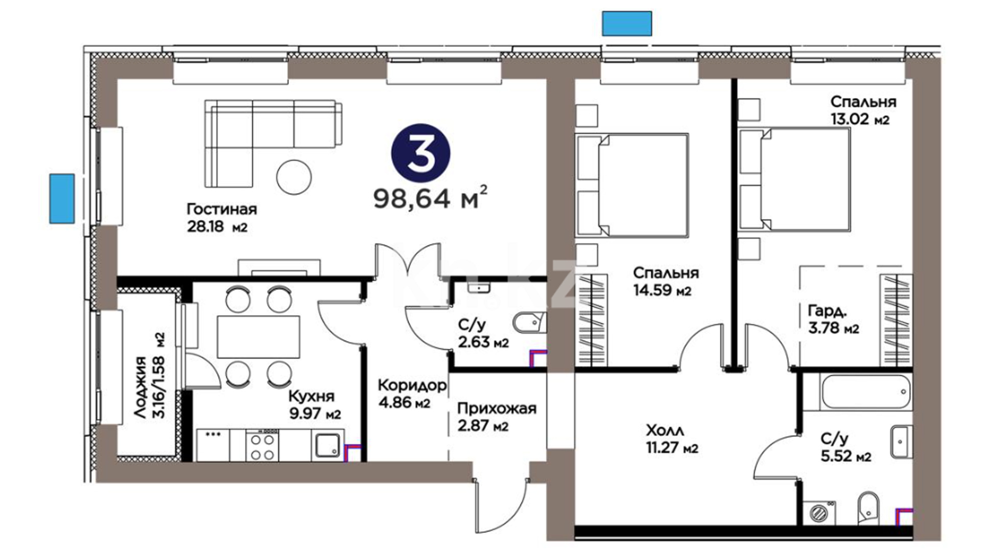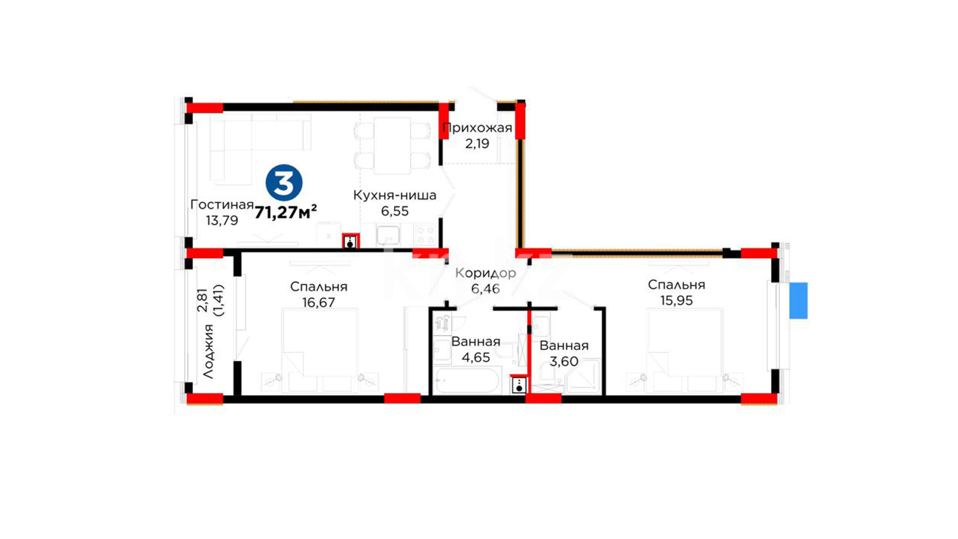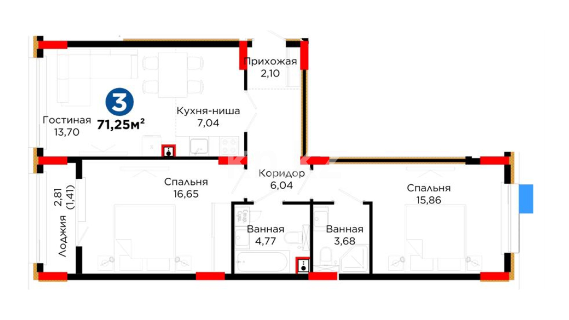 3-комнатная