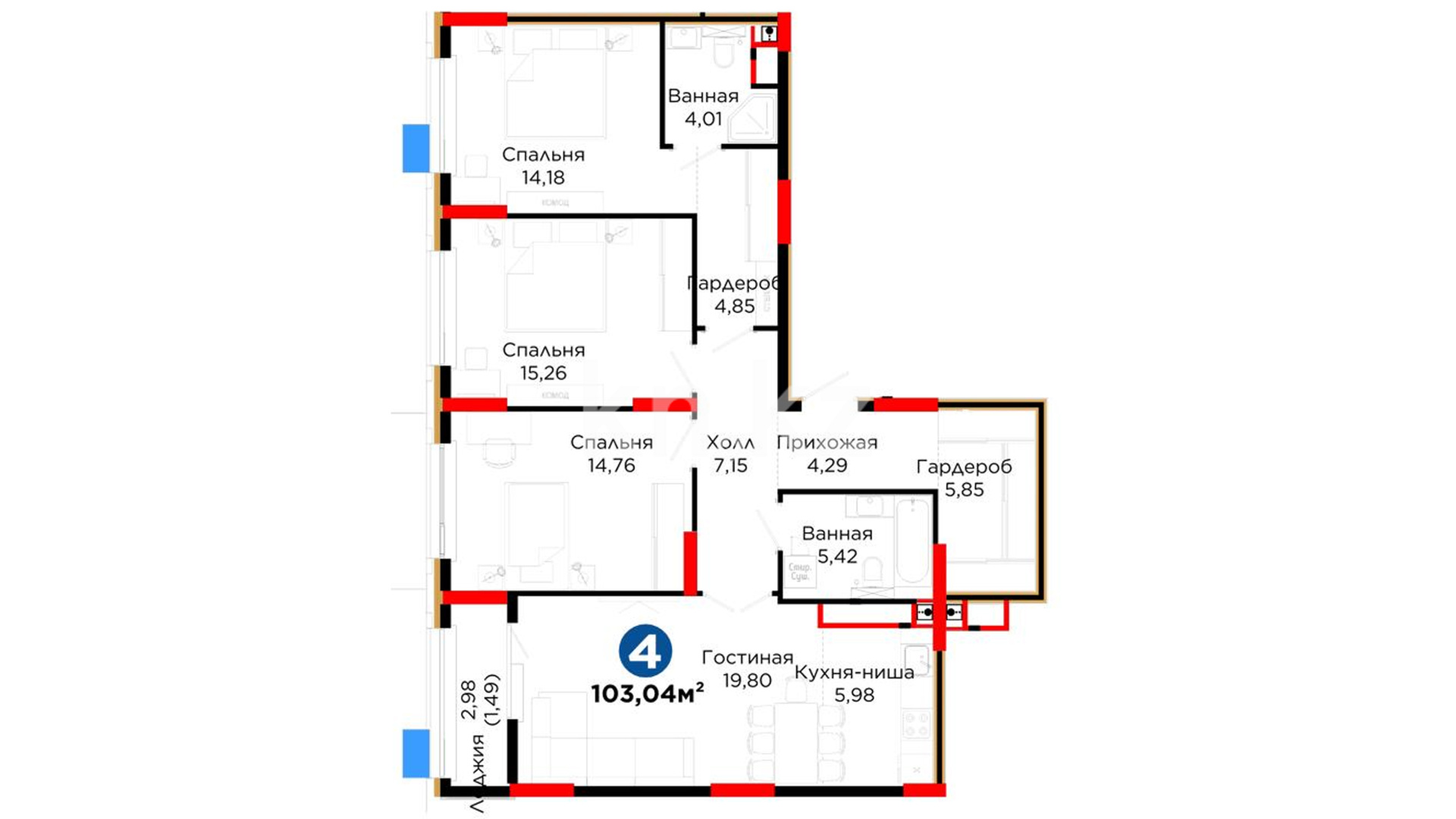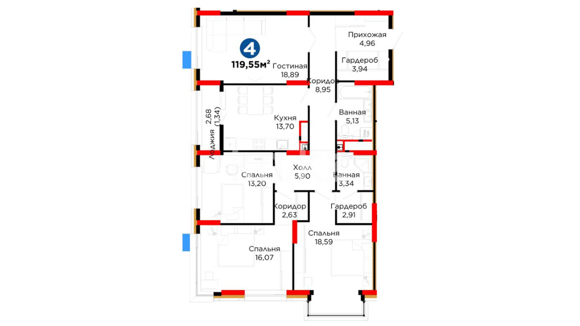 4-комнатная