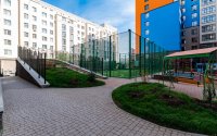 Зелёный двор, спроектированный по принципу «без машин», на территории ведется круглосуточное видеонаблюдение, на въезде установлен шлагбаум.