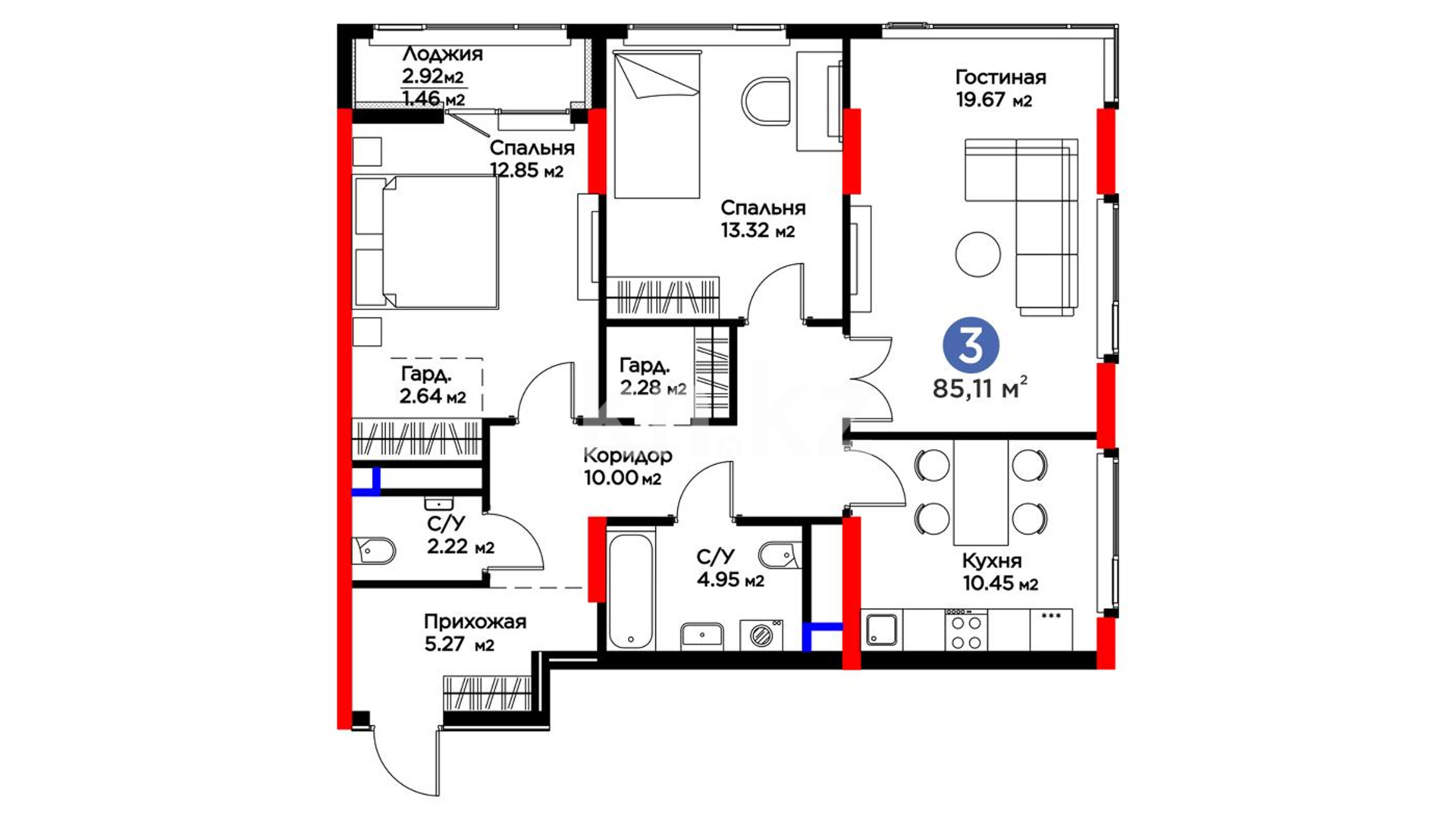 - Камеры видеонаблюдения в холлах и лифтах создают дополнительный уровень безопасности.