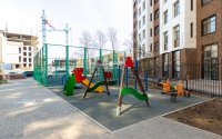 Во дворе установлены детская и спортивная площадки, скамейки, беседка.