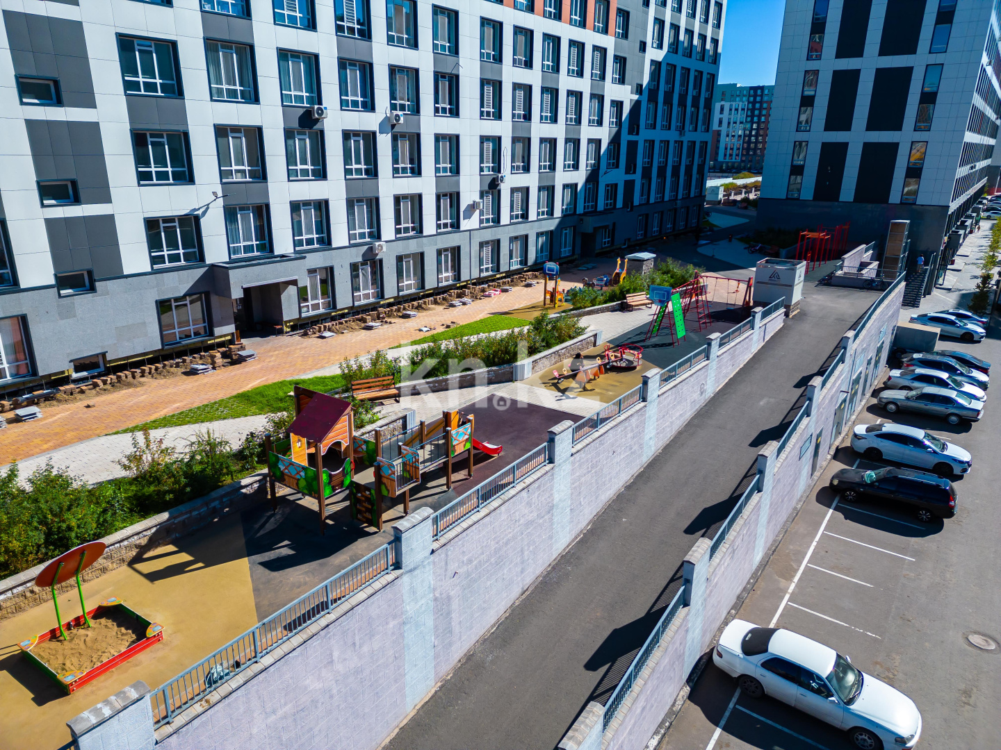 Территория комплекса закрыта для посторонних и машин. Внутренняя площадка представляет собой замкнутое и безопасное пространство, где предусмотрены: