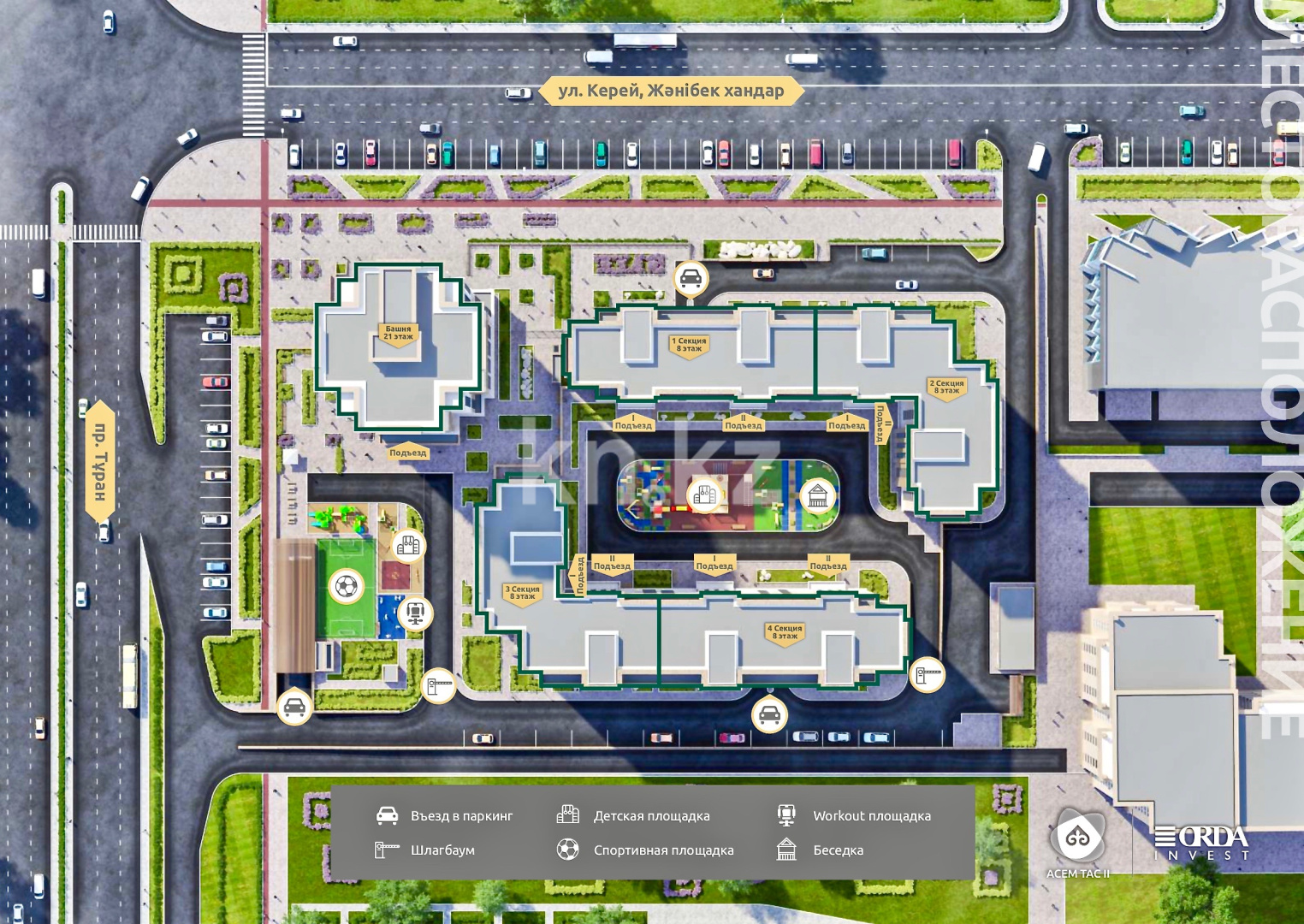 Жанибек ханов. Рядом находятся медицинские учреждения и спортивные арены. Комплекс создан для людей, которые следят за своим здоровьем и предпочитают держать свой организм всегда в тонусе.