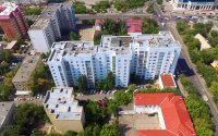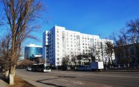 Это кирпичный 9-этажный дом, экстерьер которого выглядит обманчиво простым. Со стороны пр. Абая торцевую часть здания занимает бизнес-центр «Шахар». Это один из первых проектов, который задавал молодой столице планку нового уровня жизни. Помимо системы видеонаблюдения, за безопасностью следили консьержи, которые дежурили в каждом подъезде. Сегодня дом утопает в зелени и мало выделяется из окрестных зданий ещё советской постройки.