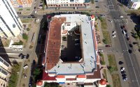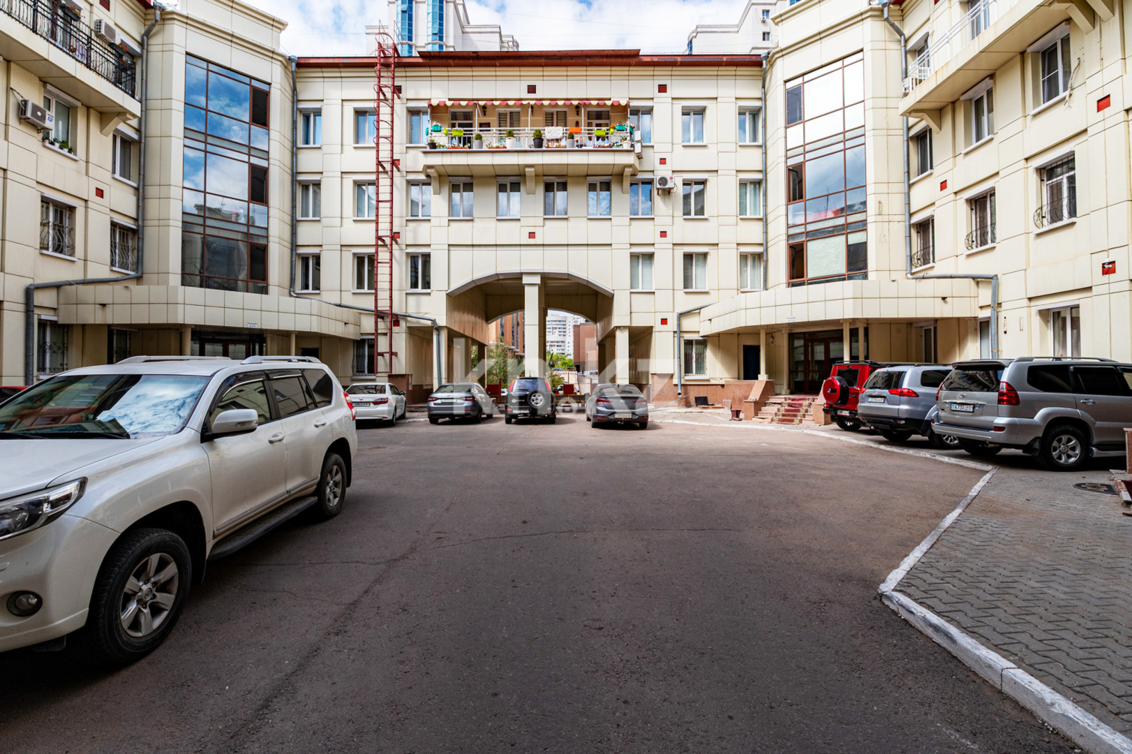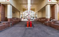 Попасть во двор можно только сквозь арки, выходящие на ул. Иманова и ул. Баянауыл. Территория двора находится под видеонаблюдением и охраняется.