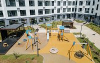 Внутридомовая территория спроектирована согласно концепции «двор без машин». Безопасность жителей обеспечивают: круглосуточное видеонаблюдение и пункт охраны.