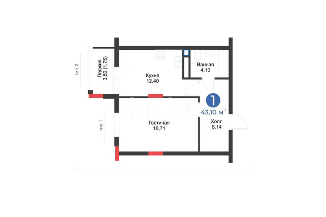 1-комнатные - от 37,49 до 53,65 кв.м;