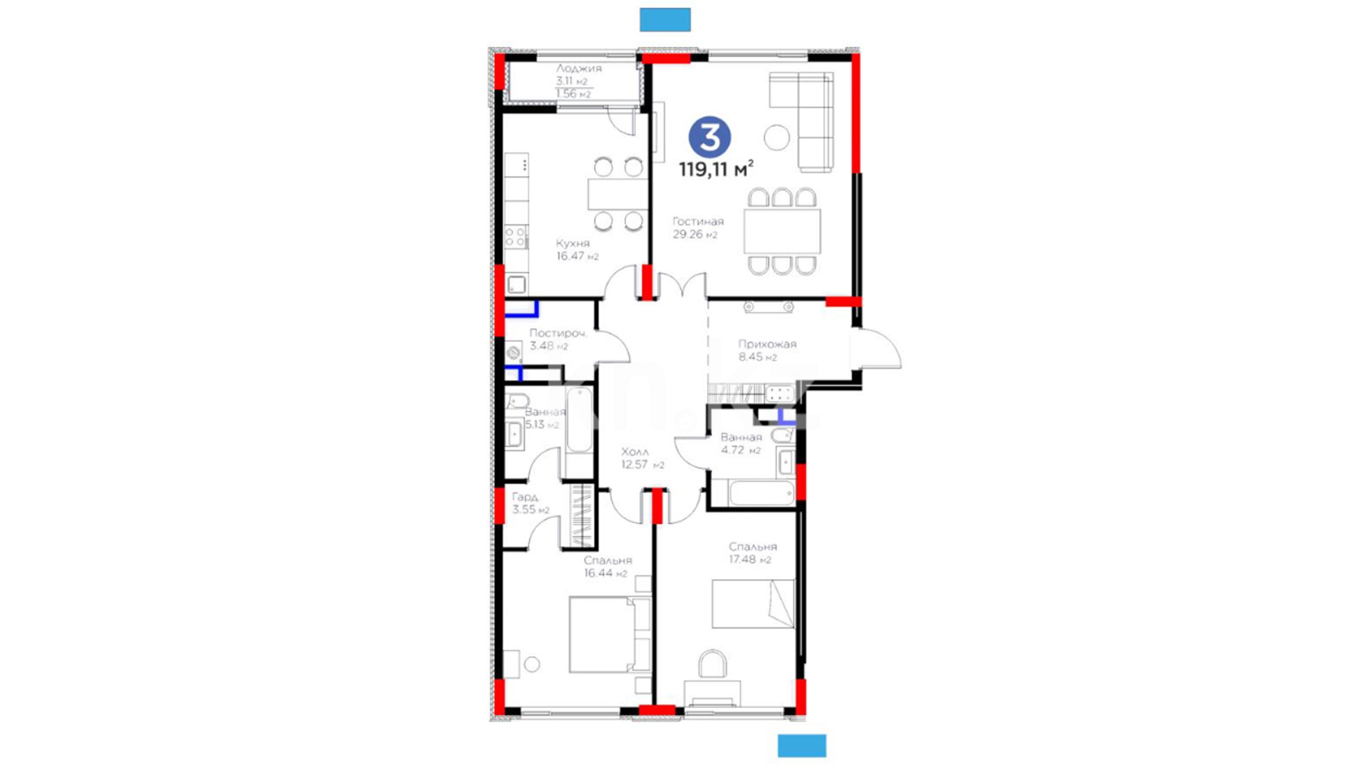119,05 – 129,62 м²